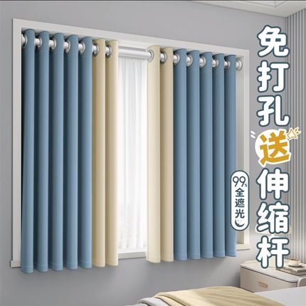 窗帘免打孔安装伸k缩杆一整套全遮光2024新款卧室U小窗户家用儿童
