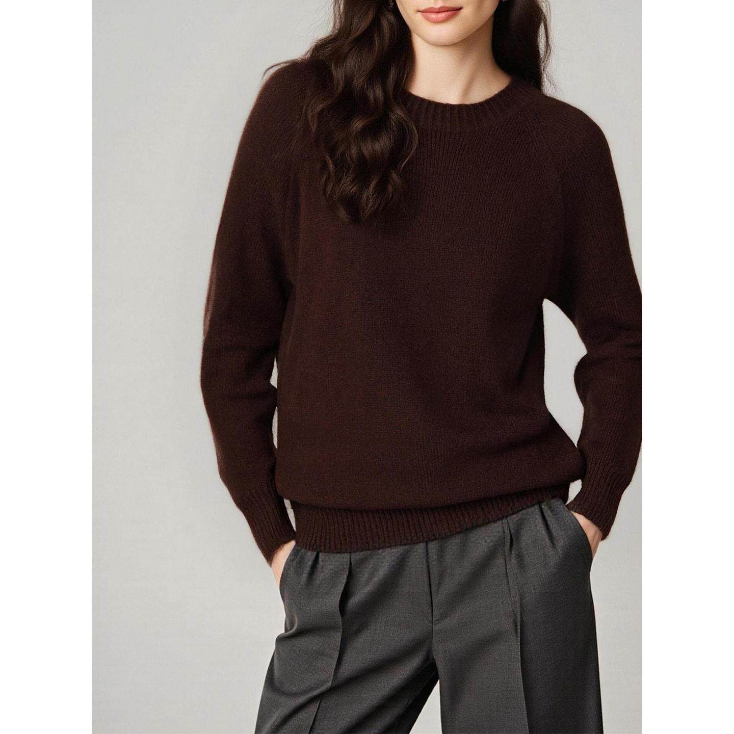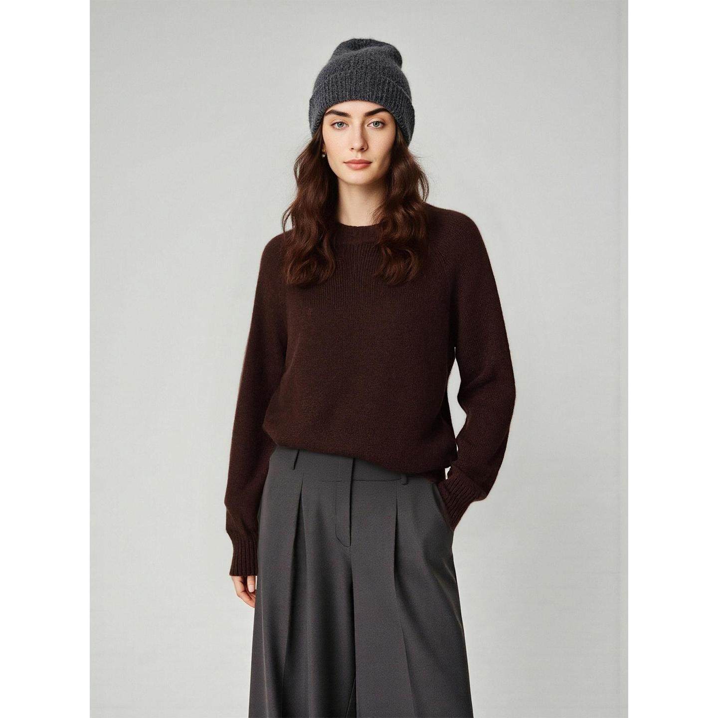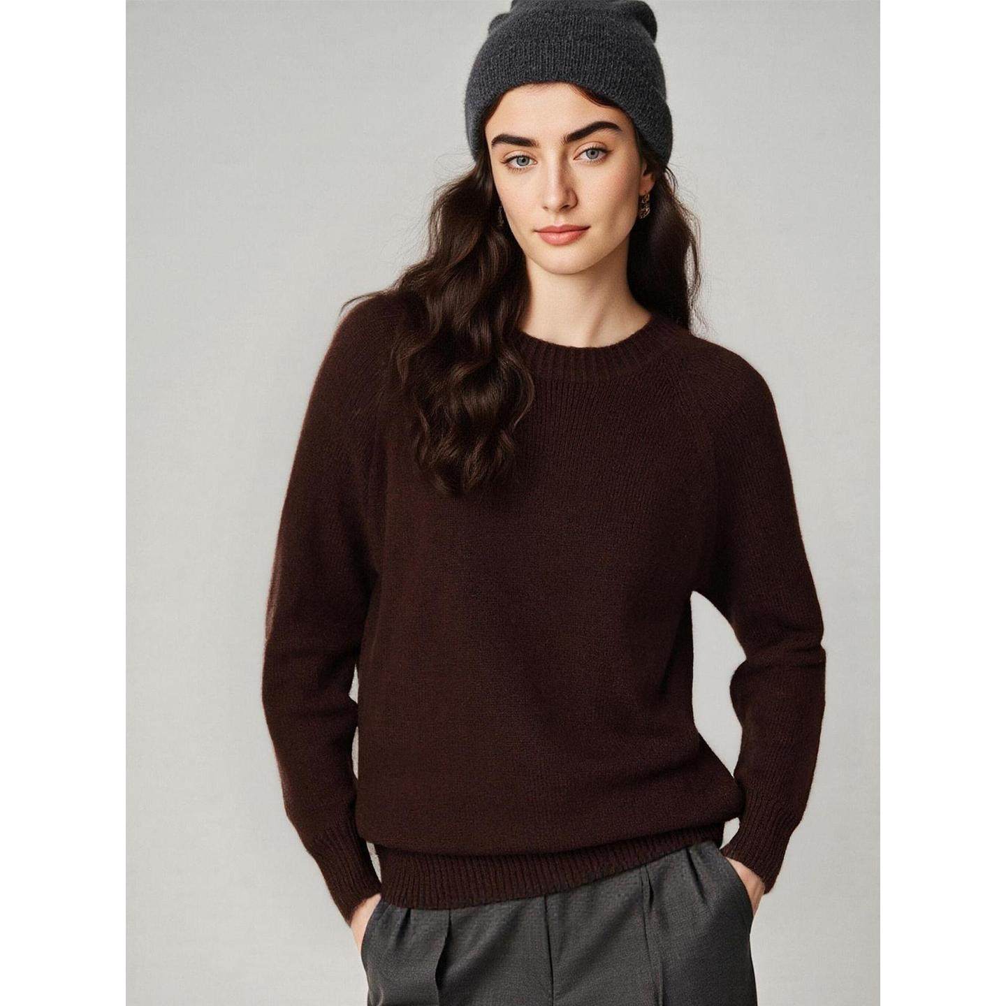 咖色加厚圆领毛衣100%羊毛针织衫