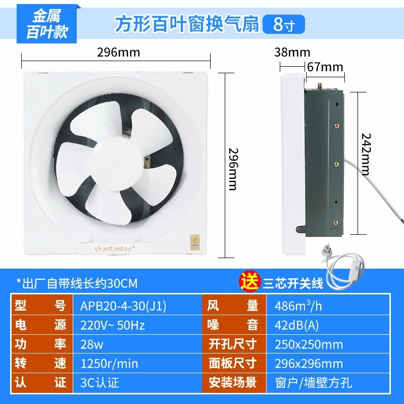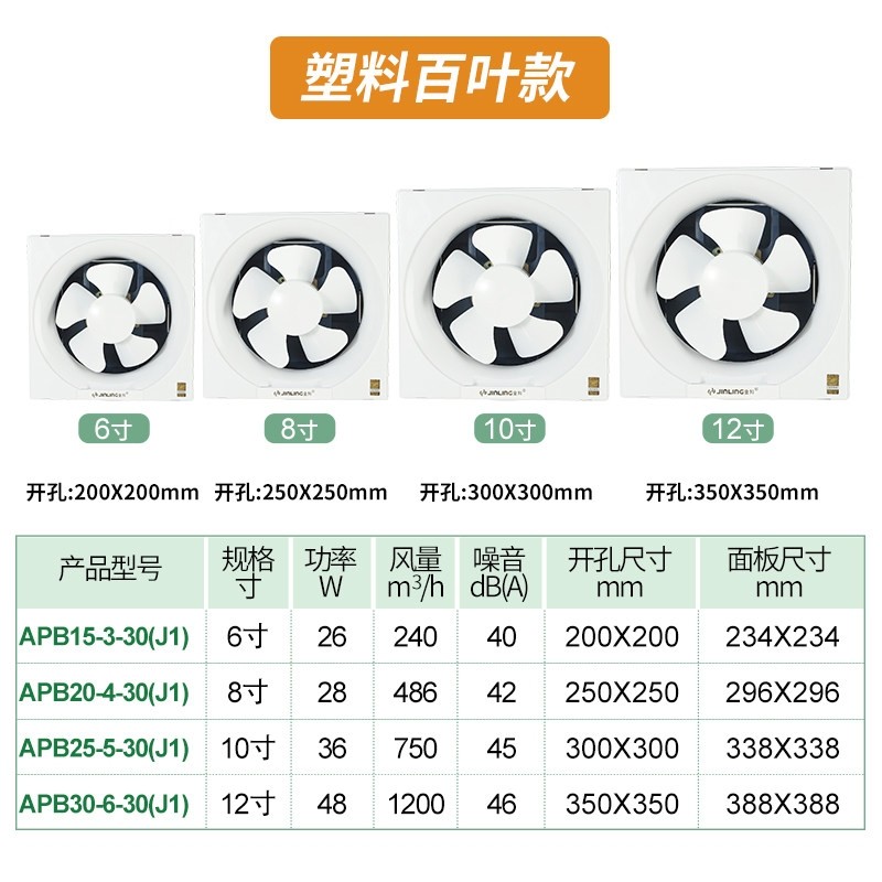 金羚排气扇卫生间8百叶窗式6方形