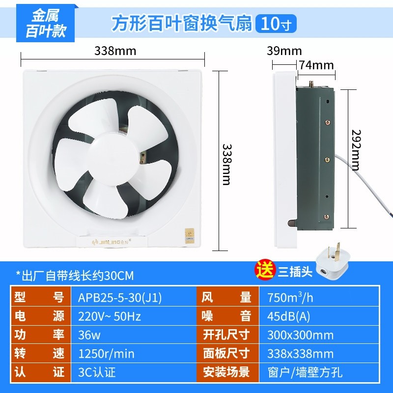 金羚排气扇卫生间8百叶窗式6方形风机12寸墙壁10玻璃换气扇厨房抽
