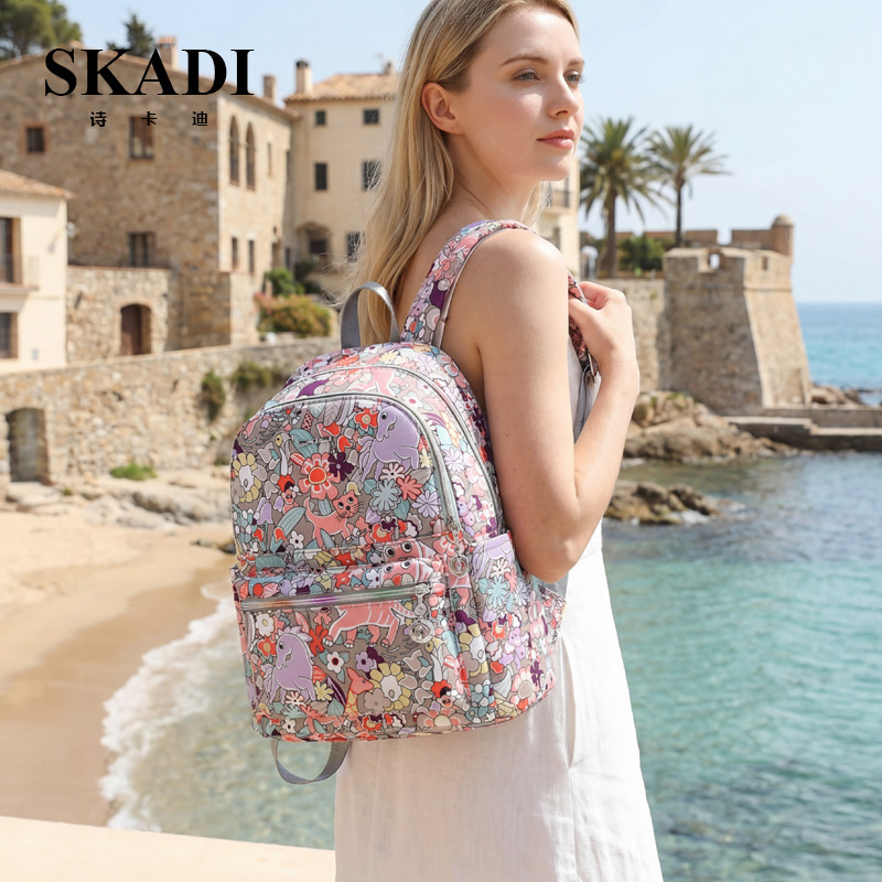 SKADI2025新款双肩包女韩版时尚多口袋休闲旅行帆布女士背包