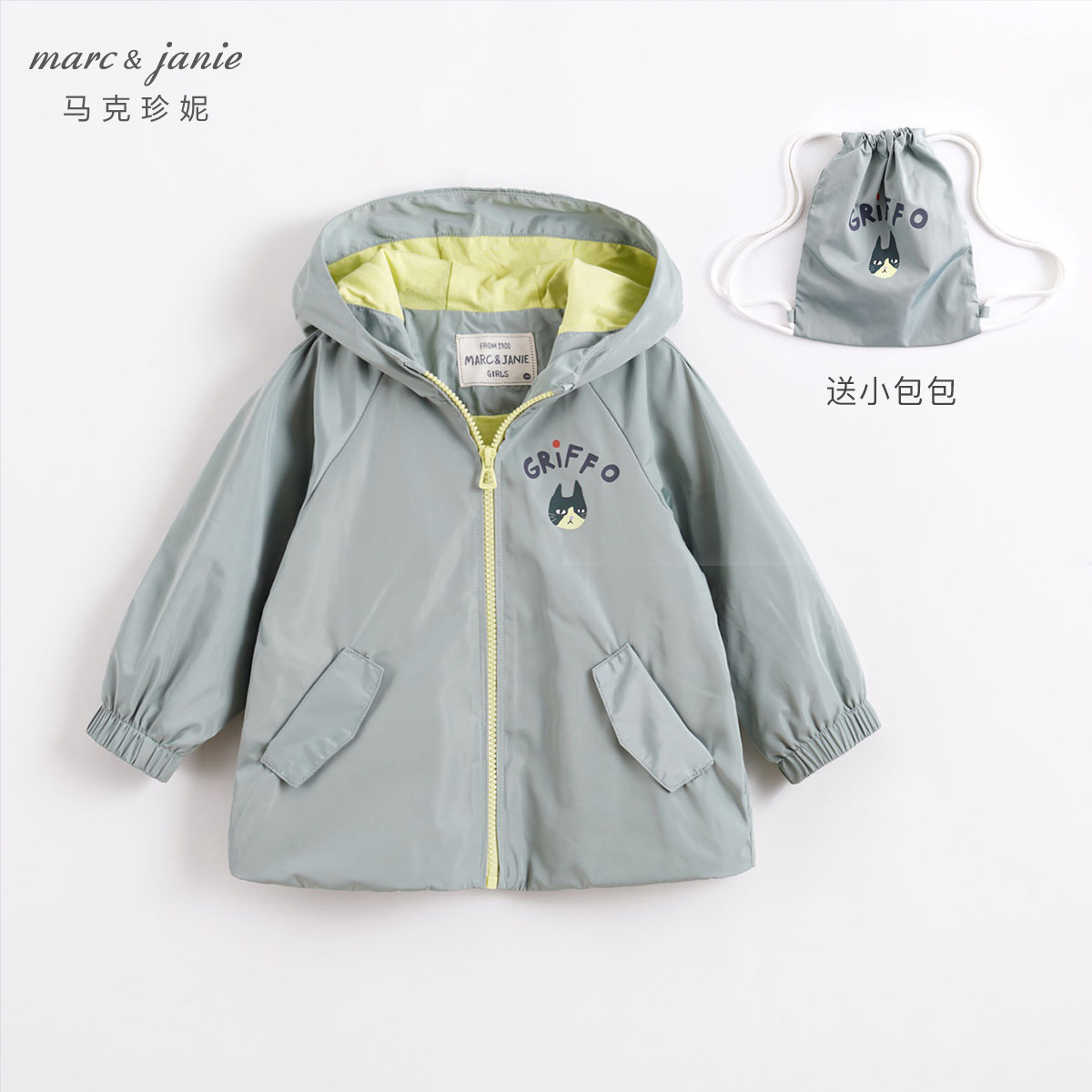 【打折】马克珍妮 女童风衣外套连帽春装 宝宝休闲上衣宽松212990