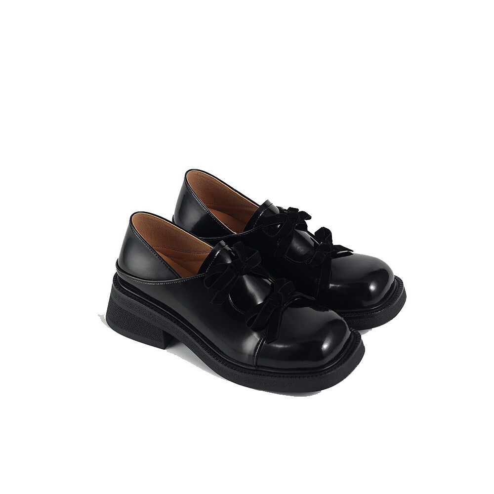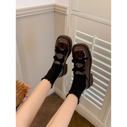蝴蝶结绑带漆皮单鞋女2026春季新款欧洲站棕色厚底小皮鞋玛丽珍鞋