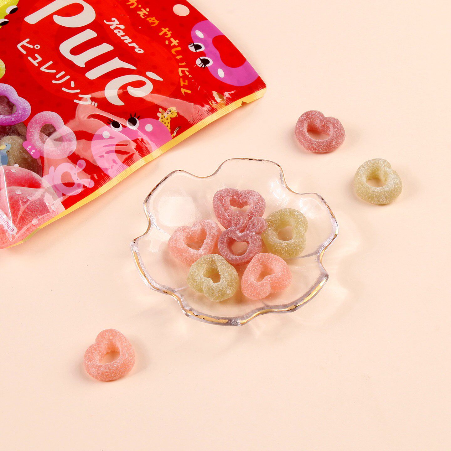 日本进口甘乐pure心形果汁软糖多种水果口味QQ橡皮爱心糖果零食