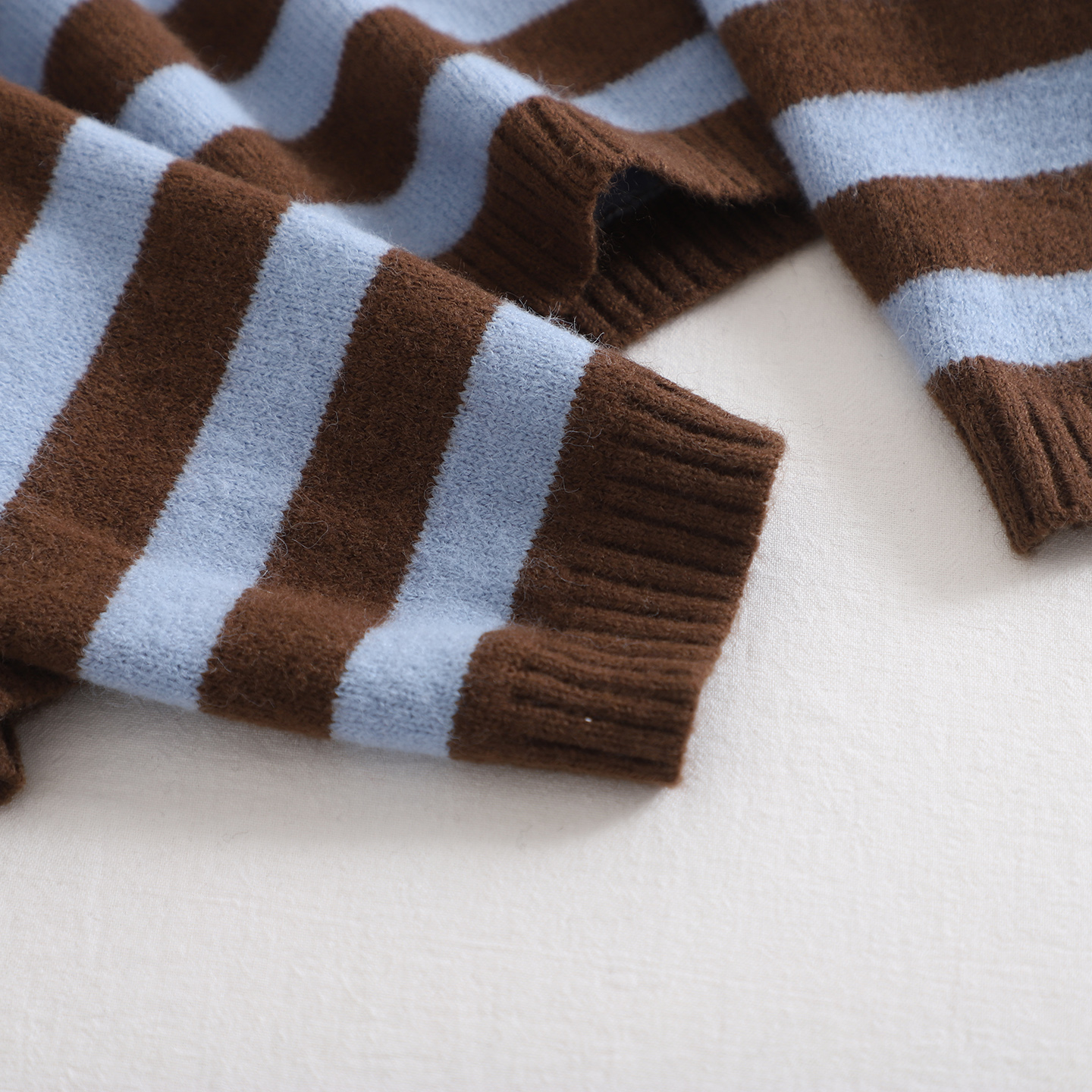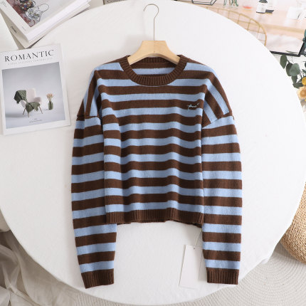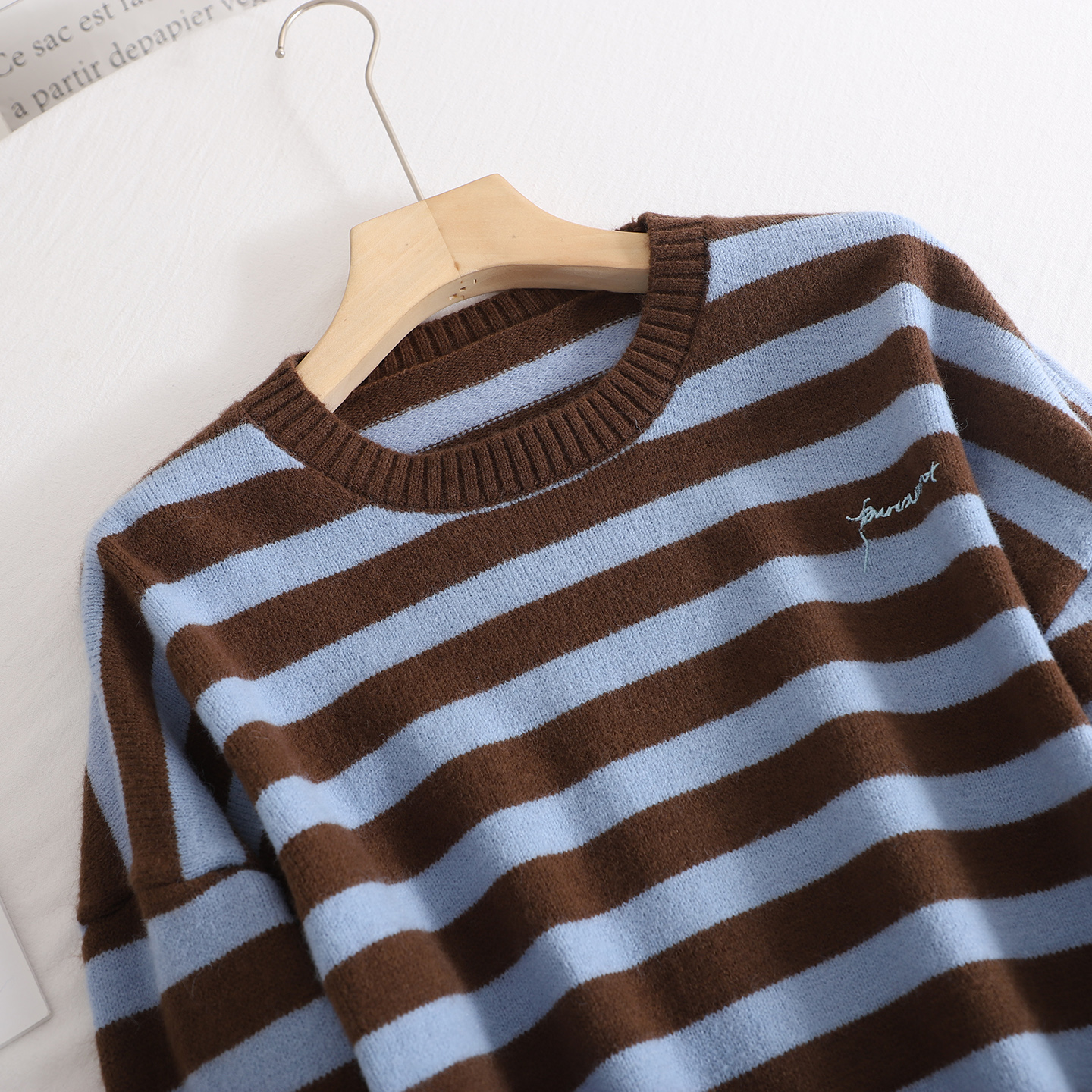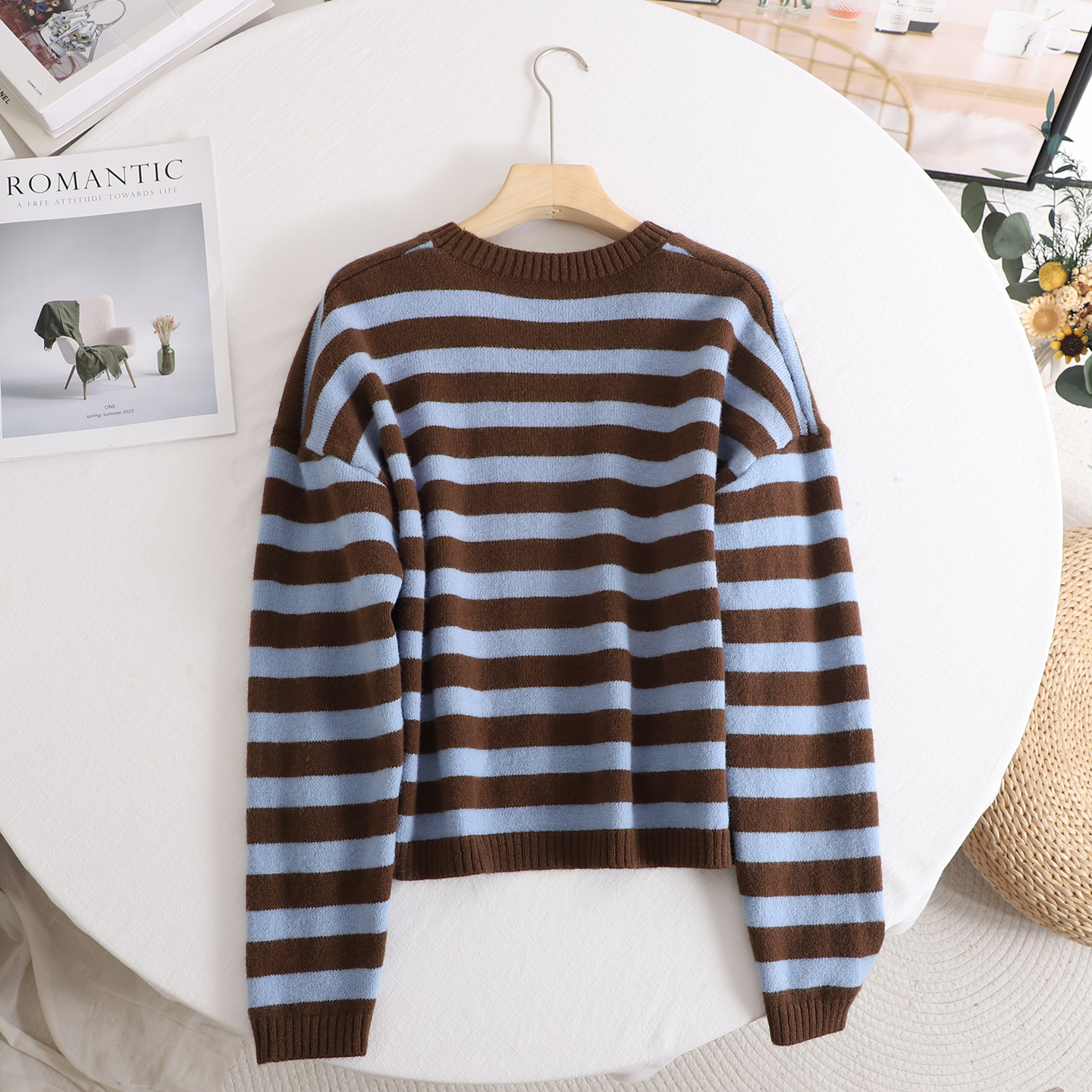 麦 韩系温柔条纹针织衫女百搭减龄休闲圆领套头毛衣上衣2025秋冬