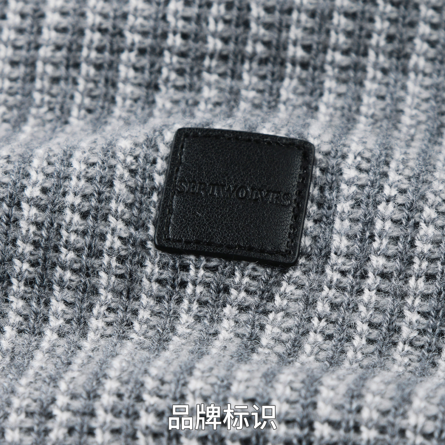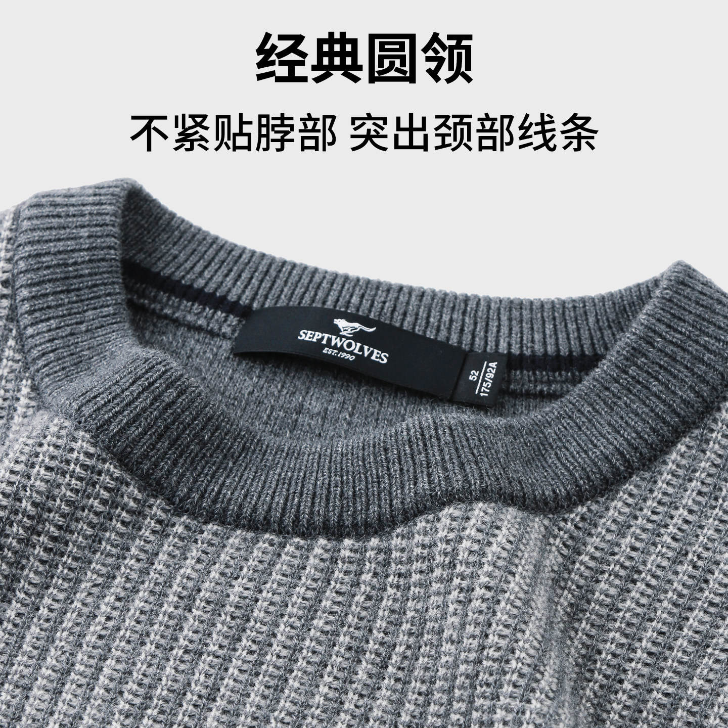 七匹狼撞色提花圆领厚羊毛衫毛衣
