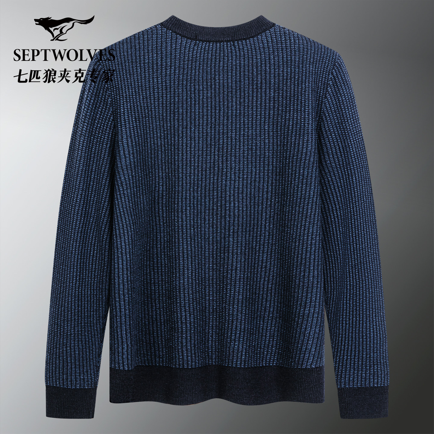 七匹狼撞色圆领毛衣男2025新款秋冬季男士提花厚羊毛衫通勤针织衫