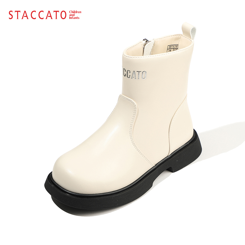 思加图童鞋女童时尚时装靴秋季舒适软底英伦风短靴中大童百搭皮靴