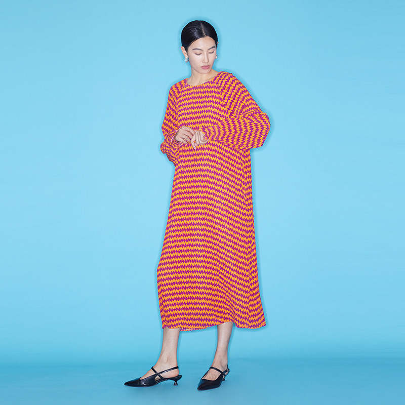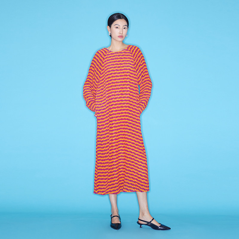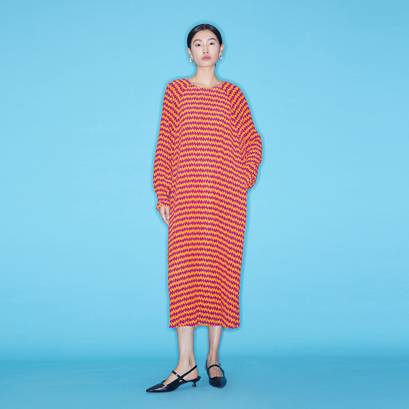 CHENSHII官方 2026春季新款法式真丝几何印花宽松气质连衣裙女