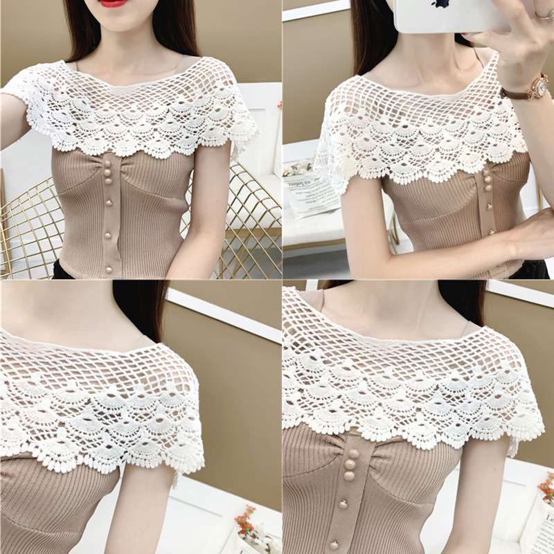 夏季韩版防晒小坎肩针织镂空蕾丝小披肩百搭短款薄外套外搭女罩衫
