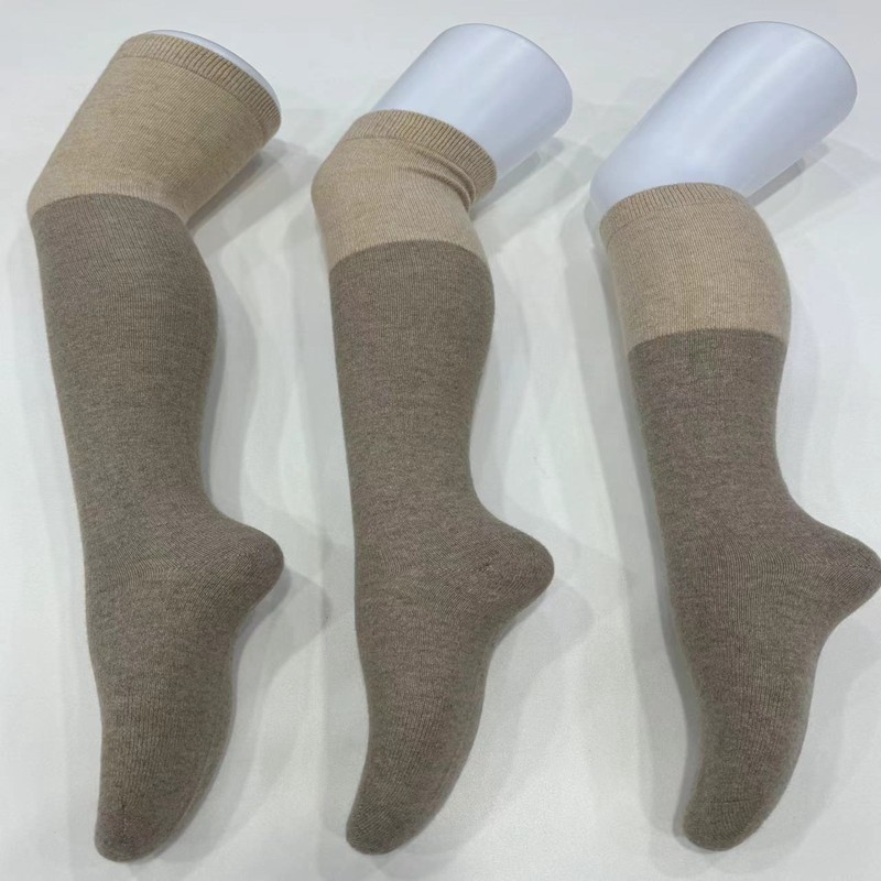 纯羊绒拼色长筒袜子~鄂尔多斯市大腿袜加厚秋冬保暖居家护腿过膝