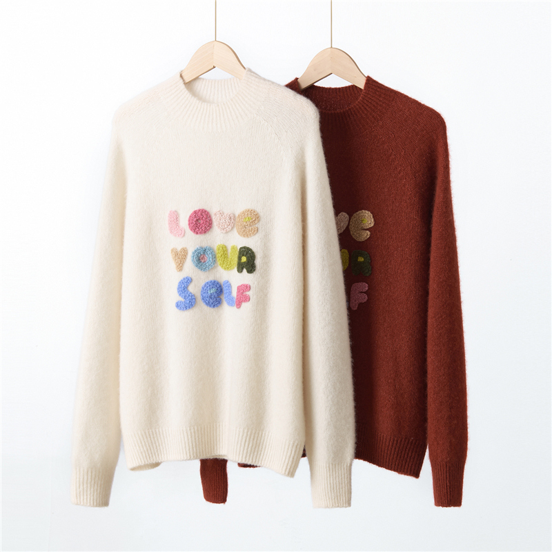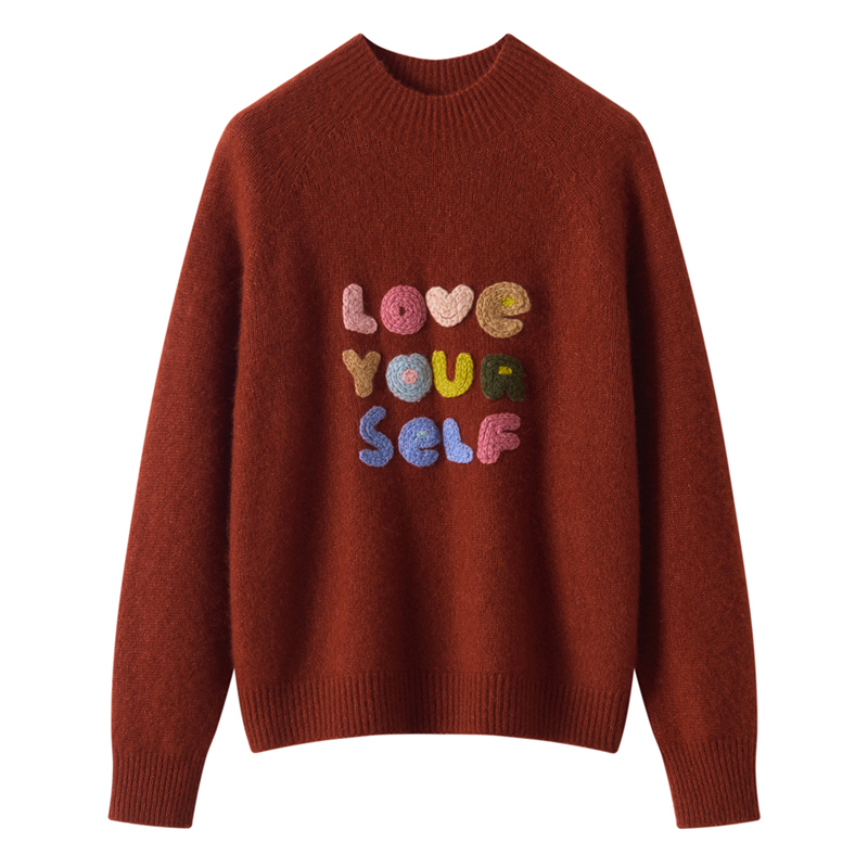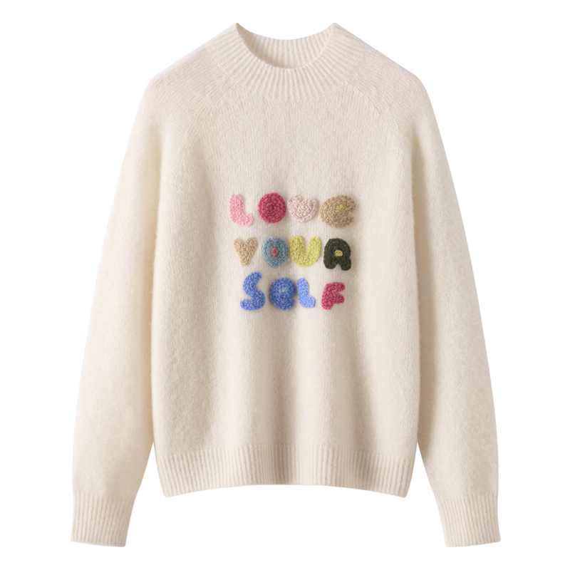 高端奢华字母刺绣桑蚕丝羊绒衫女