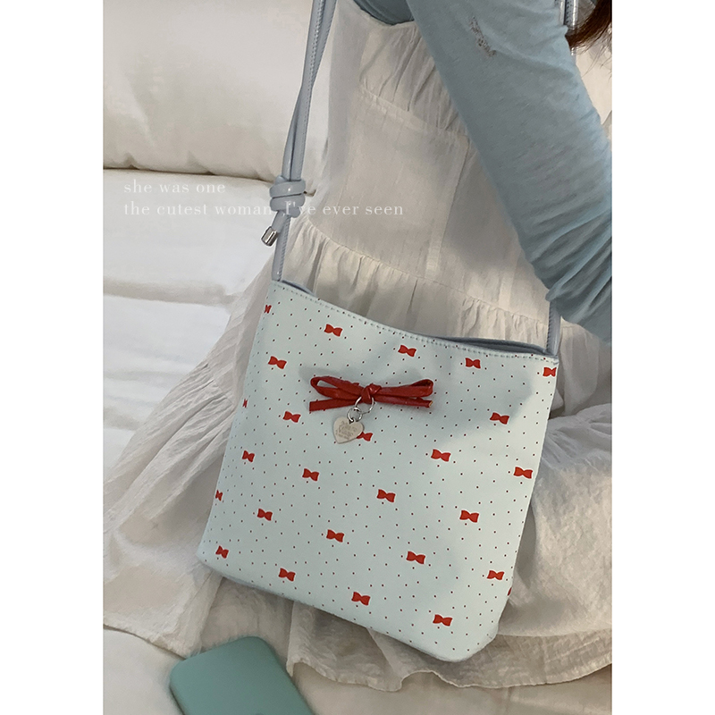 甜美波点蝴蝶结腋下包包女2025新款潮时尚小众水桶包手提奶奶包