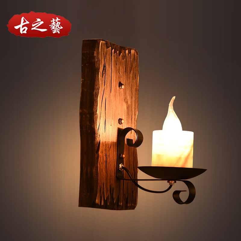 美式乡村复古怀旧实木铁艺仿古loft个性酒吧漫咖啡服装店蜡烛壁灯