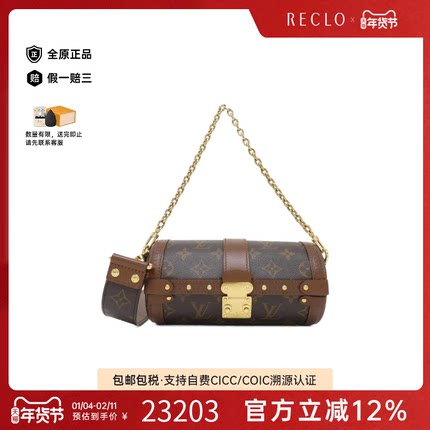 中古LV路易威登女包A级95新Papillon Trunk圆筒包老花单肩斜挎包