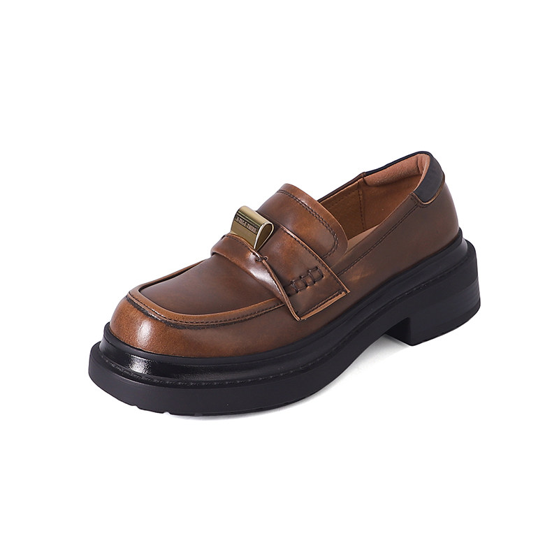 可盐可甜2026春季新款英伦厚底粗跟乐福鞋女棕色单鞋学院小皮鞋