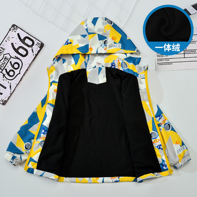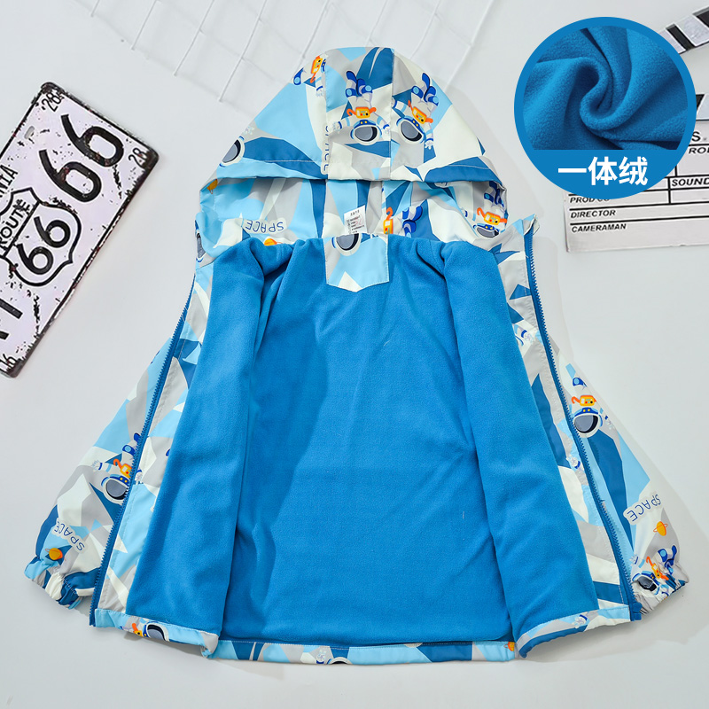 男童冲锋衣2025新款儿童薄绒外套中大童户外春秋加厚风衣3-15岁潮