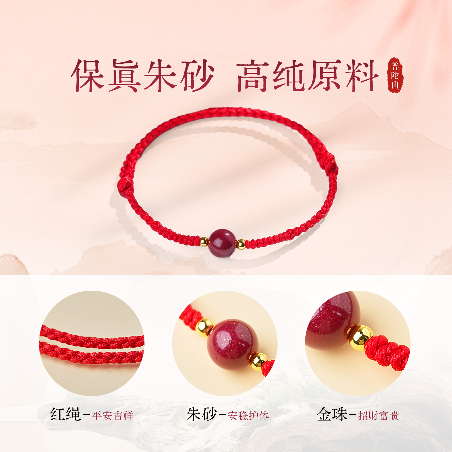 普陀山2026马年本命年红绳手链男女同款本命年吉祥佩戴物朱砂手串