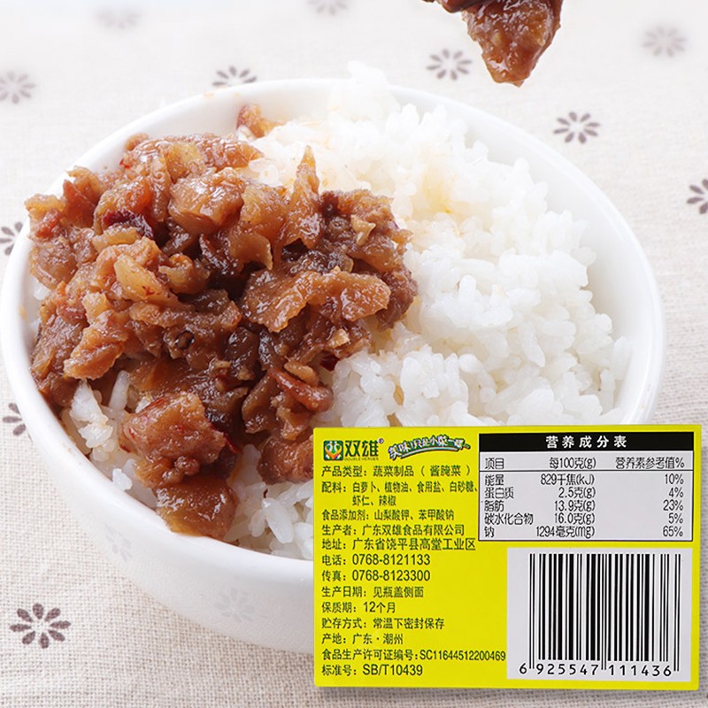双雄虾仁菜脯200g瓶装下饭菜正宗潮汕特产高堂脆萝卜丁早餐酱菜辣