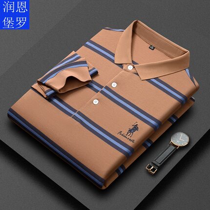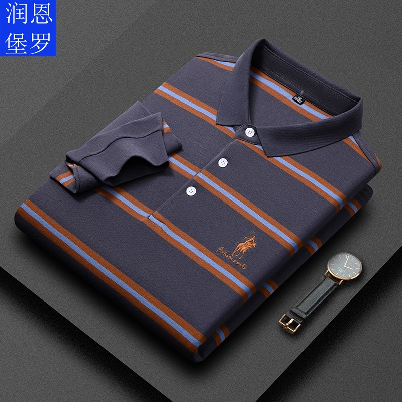保罗正品男装秋季新款条纹现货长袖日常休闲时尚合体型polo衫男