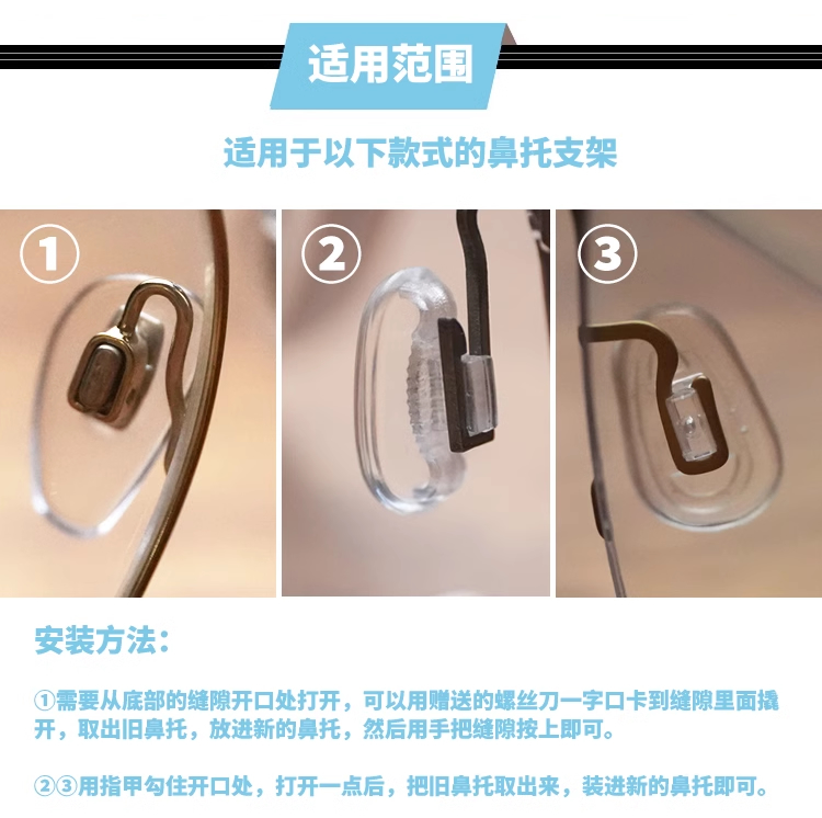 防滑眼镜鼻托 软硅胶卡扣式鼻垫 一体插入透明防压痕防卡口鼻垫拖
