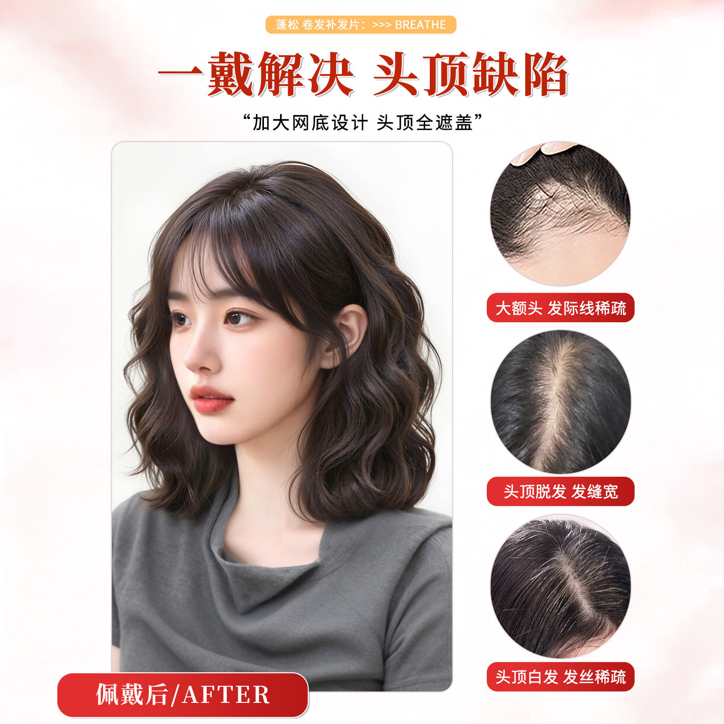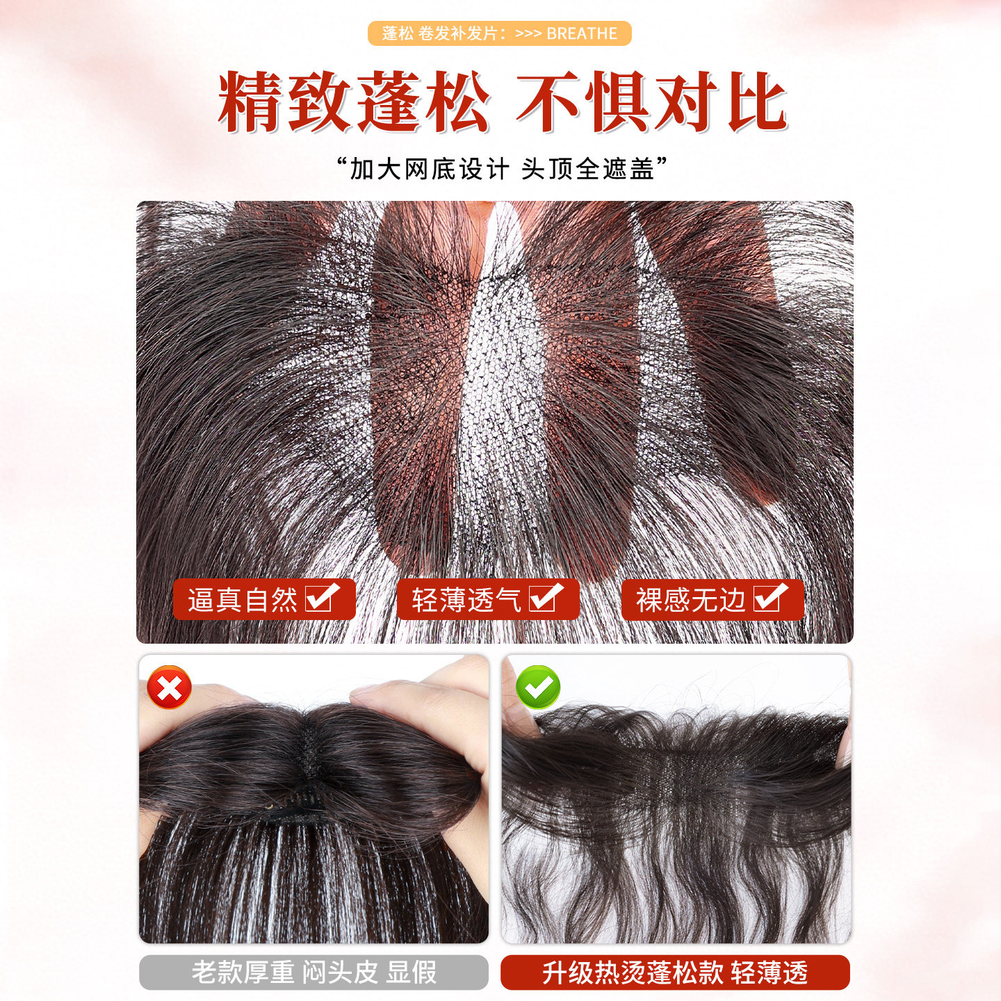 刘海假发女片头顶全真发蓬松羊毛卷增发量遮白发高颅顶卷发补发片