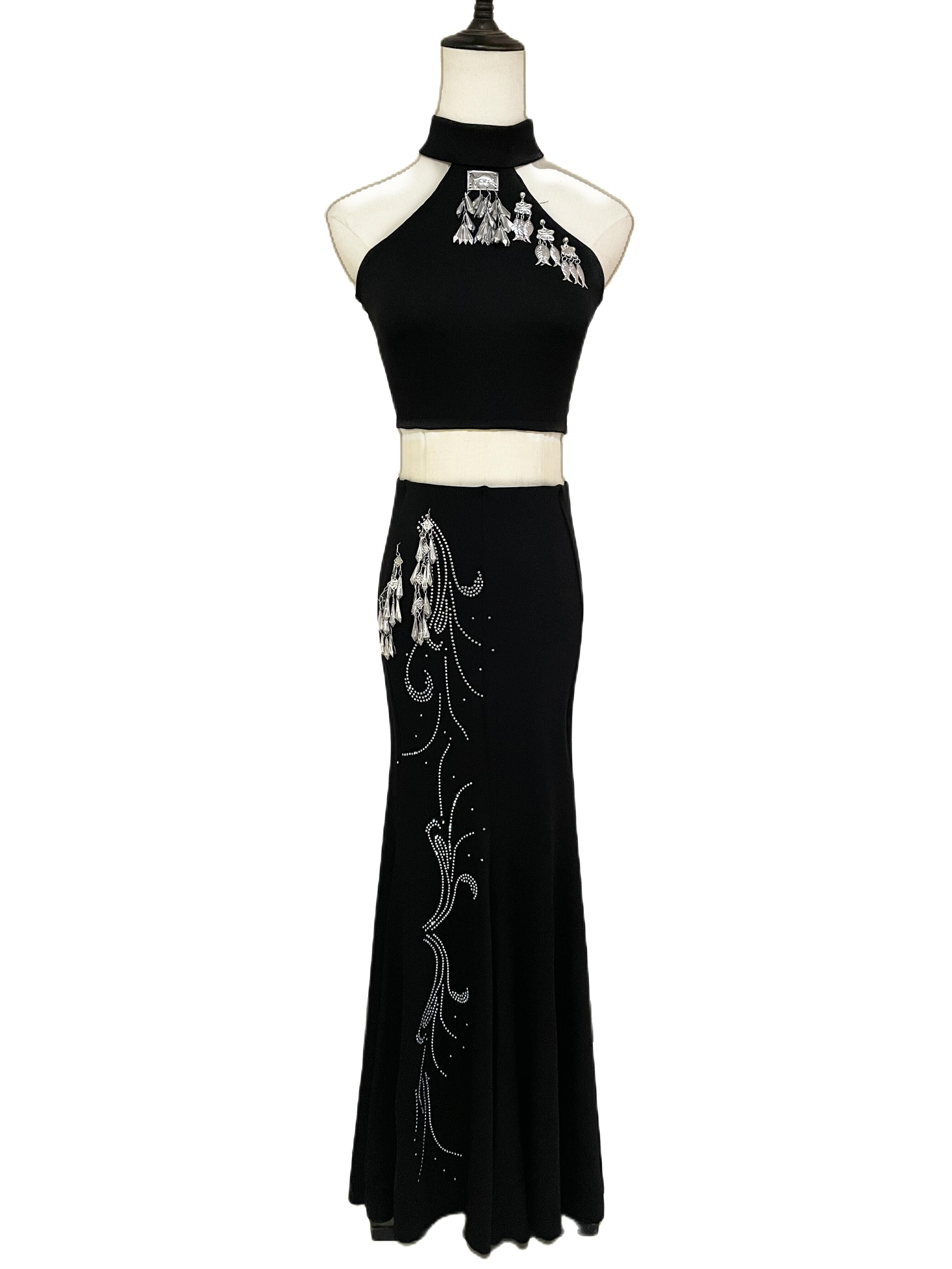 新款傣族舞蹈服装女孔雀舞表演服艺考包臀鱼尾裙花腰半身练习舞裙