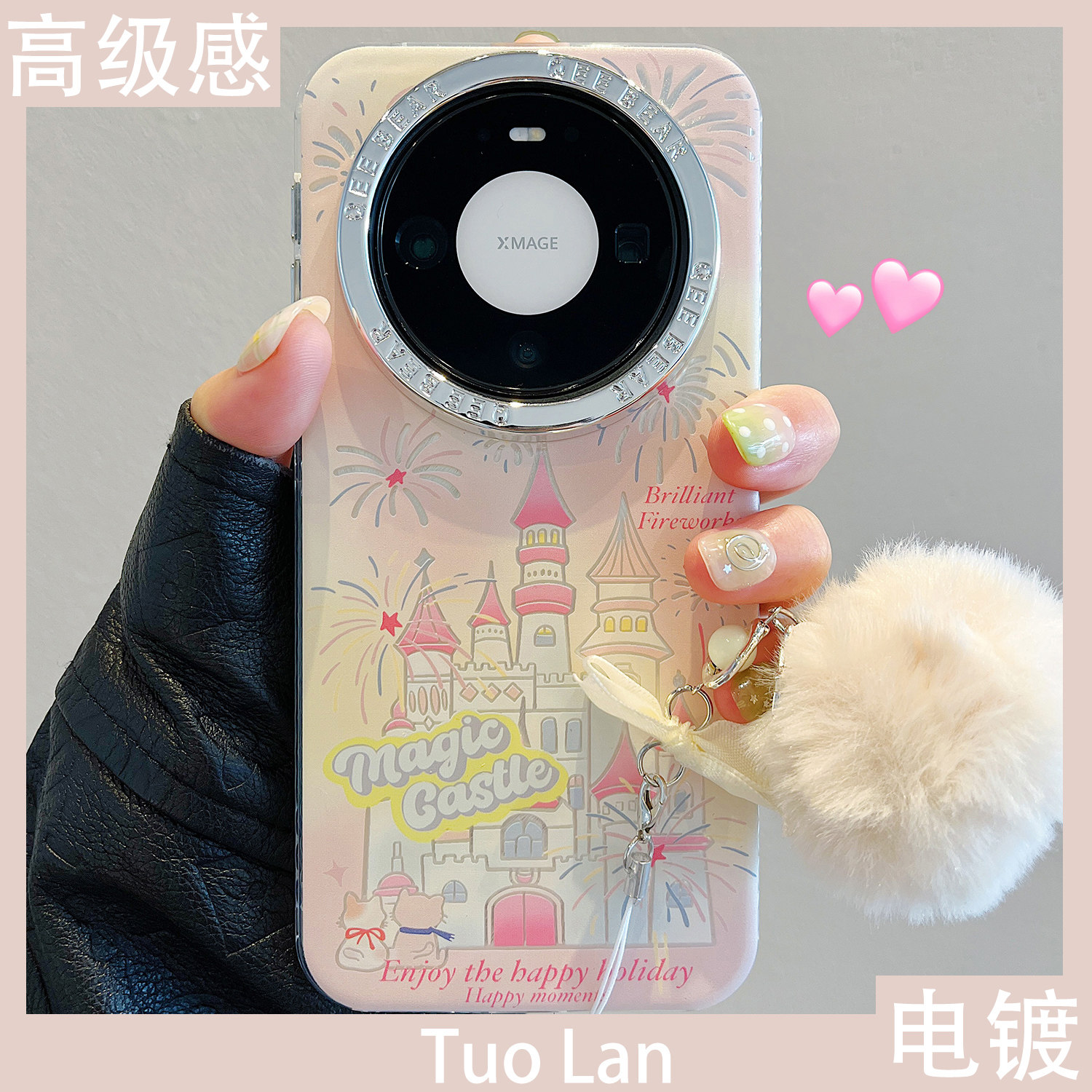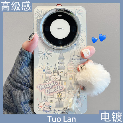 拓岚 适用华为mate60pro+新年手机壳mate80pro蓝色猫咪烟花城堡mate80promax高级感pura80电镀银mate70/50女