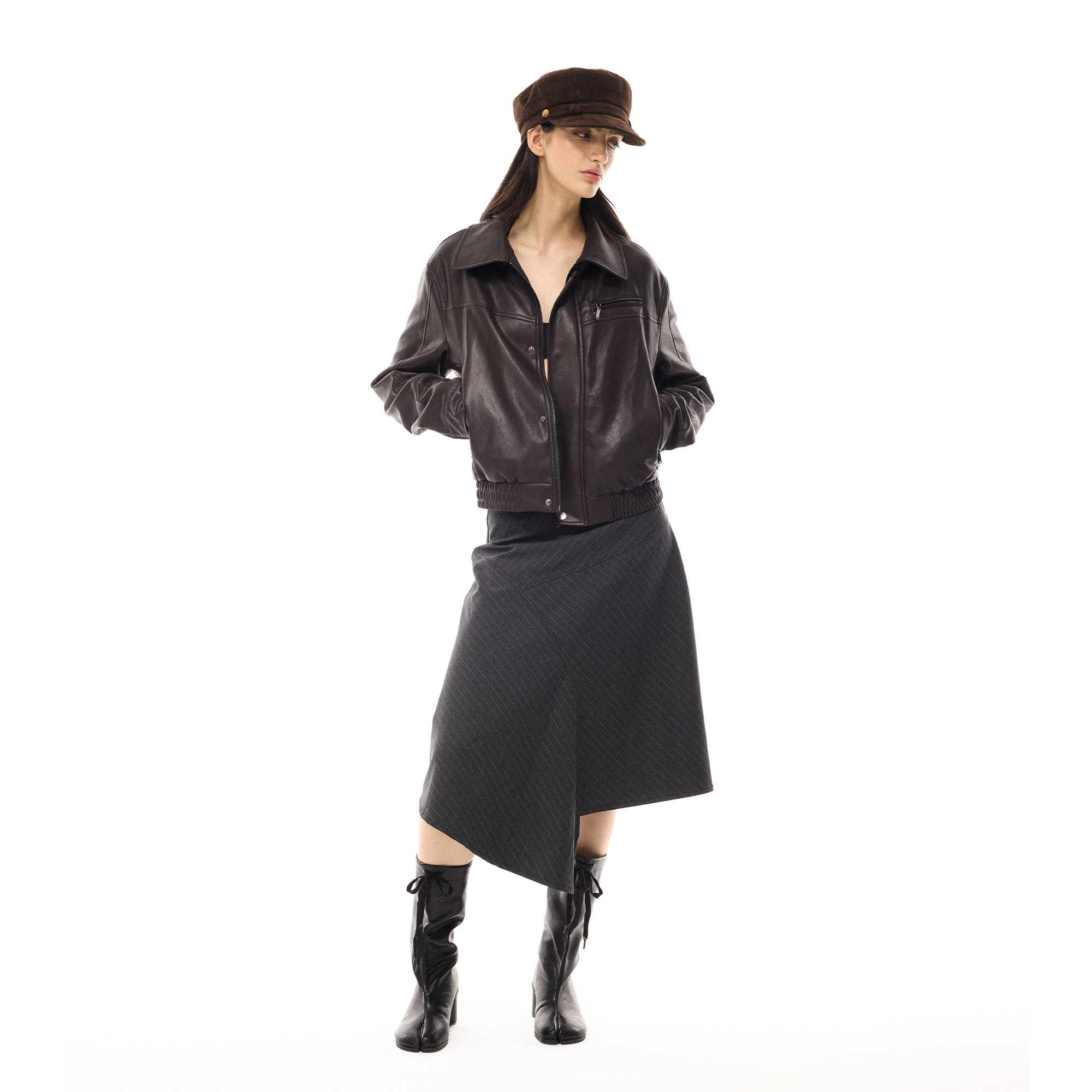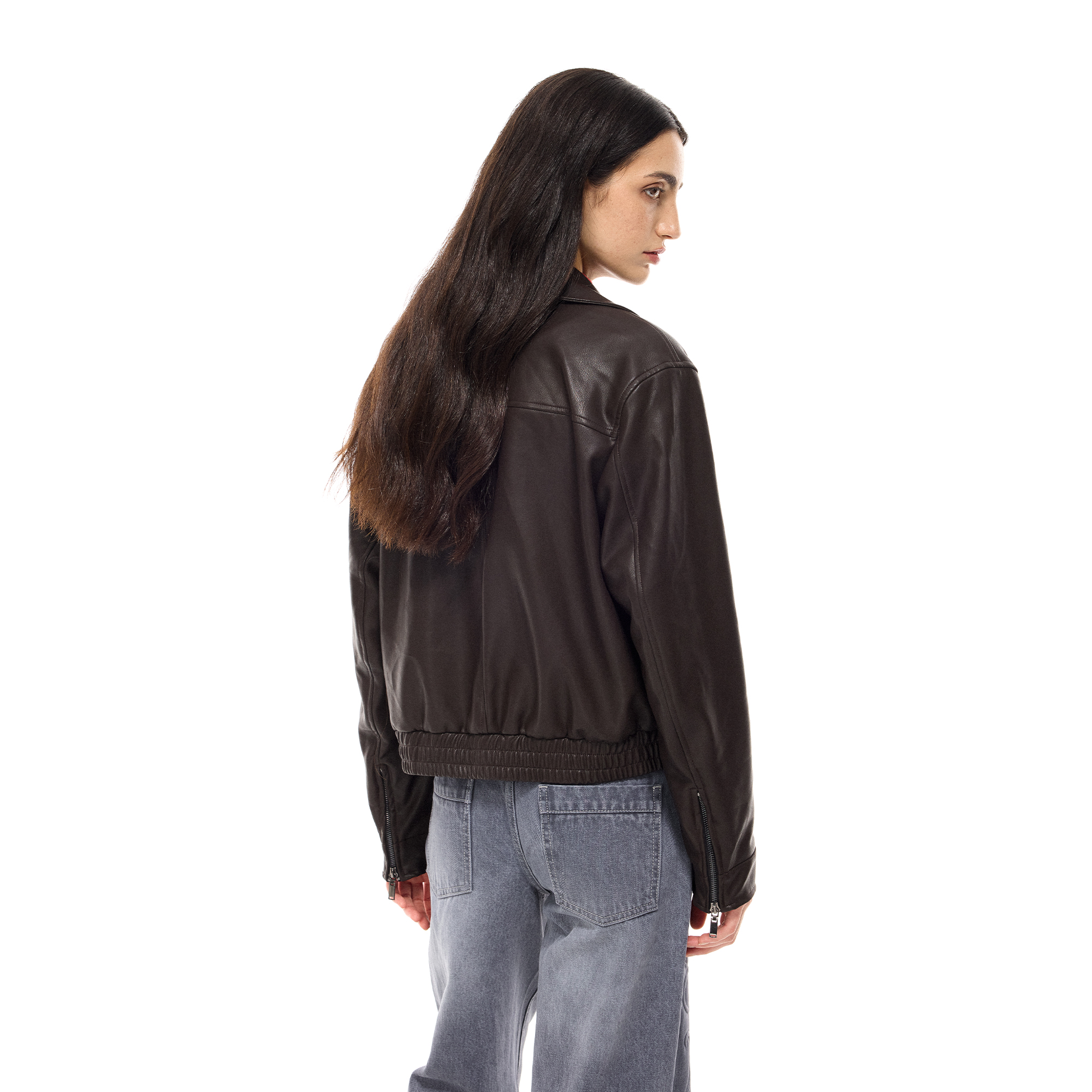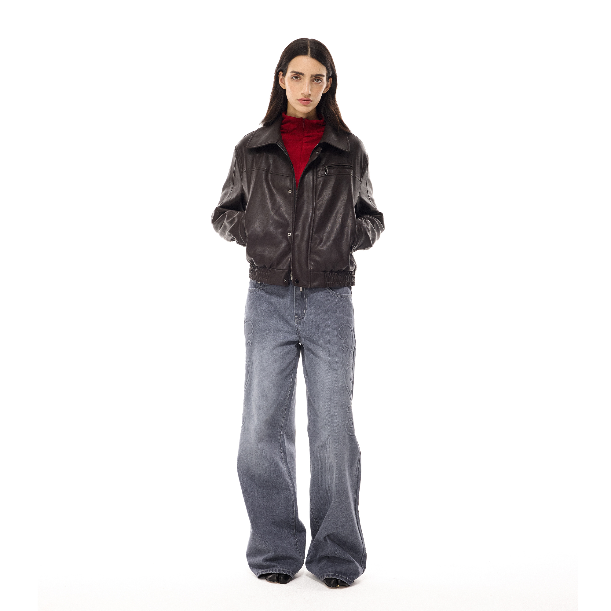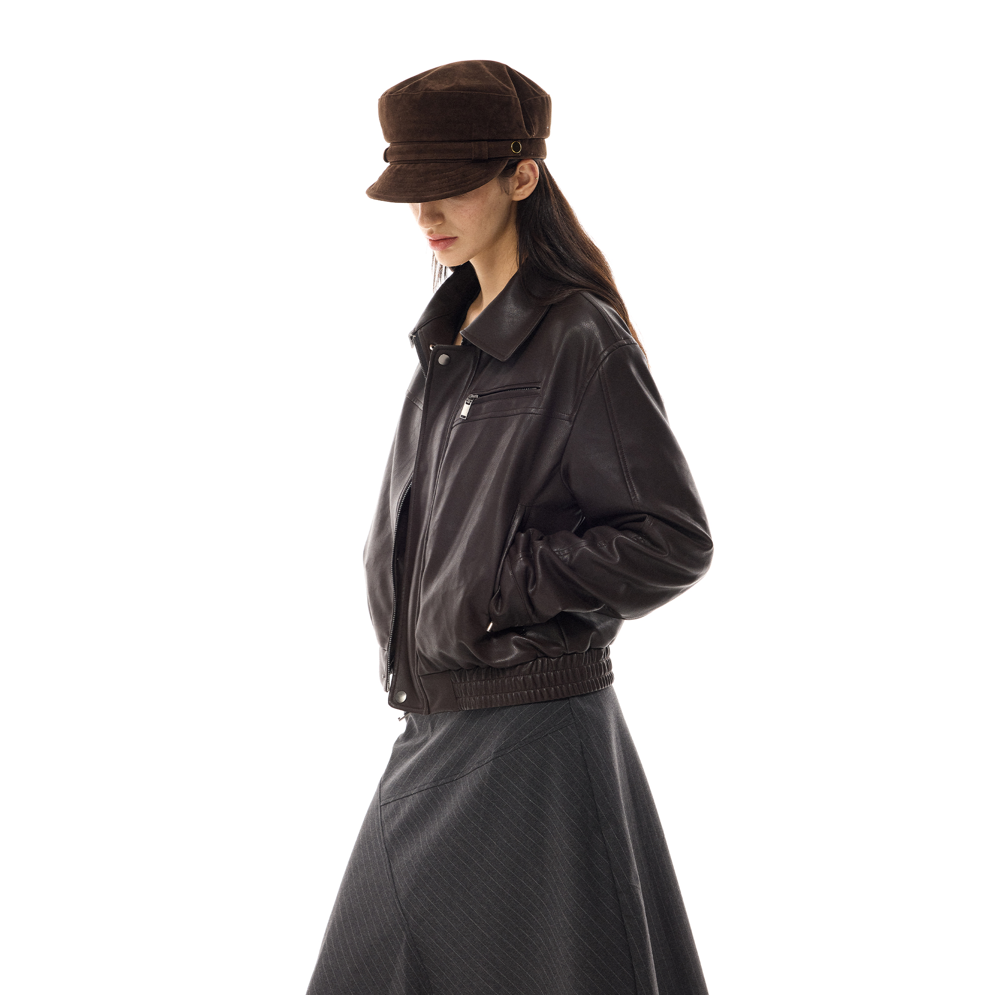costustoot 秋冬短款复古多拉链口袋加绒厚款飞行员皮夹克外套女