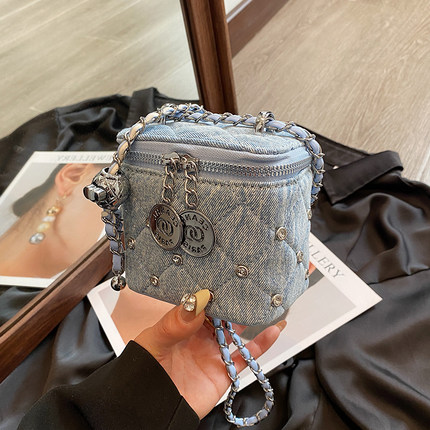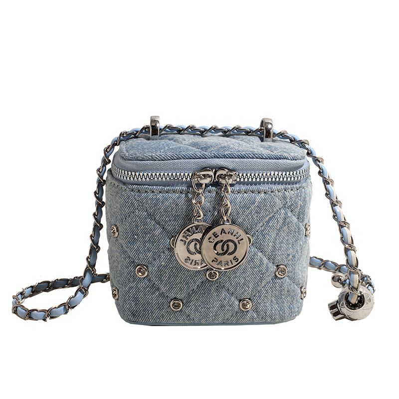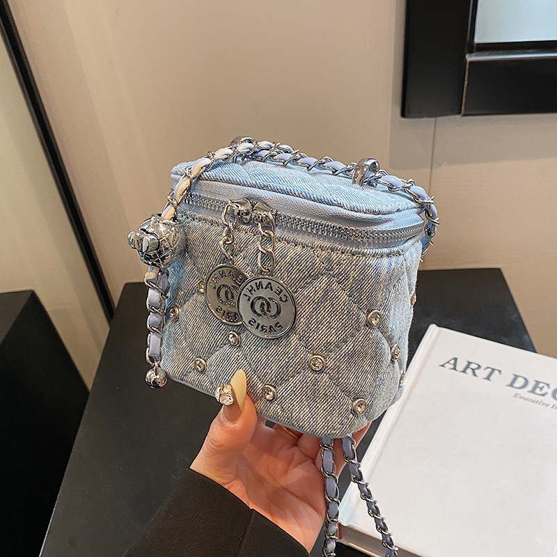 时尚超火牛仔布包包女2025新款菱格链条斜挎包迷你单肩盒子小方包