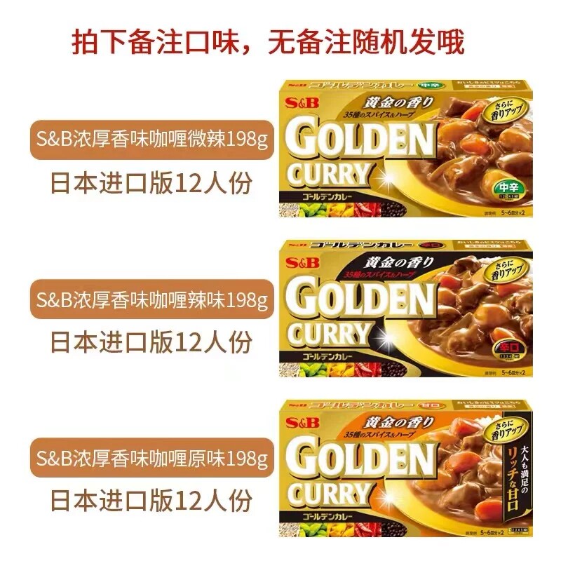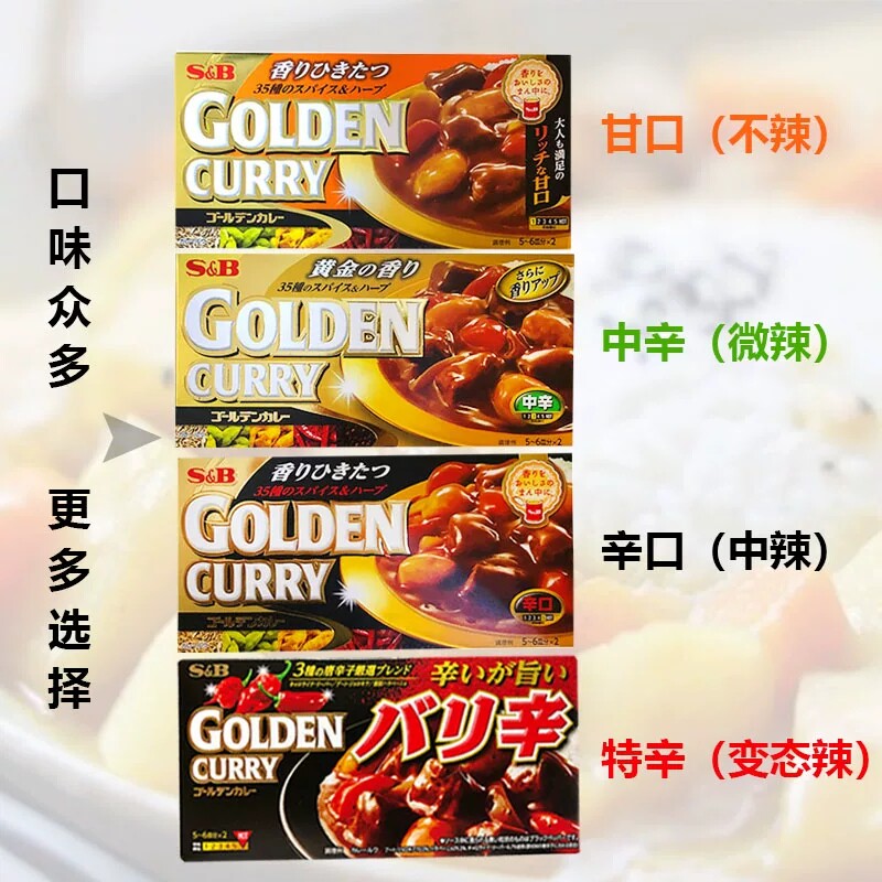 日本进口SB黄金咖喱块金牌浓厚原味辣味微辣正宗日式调味料198g
