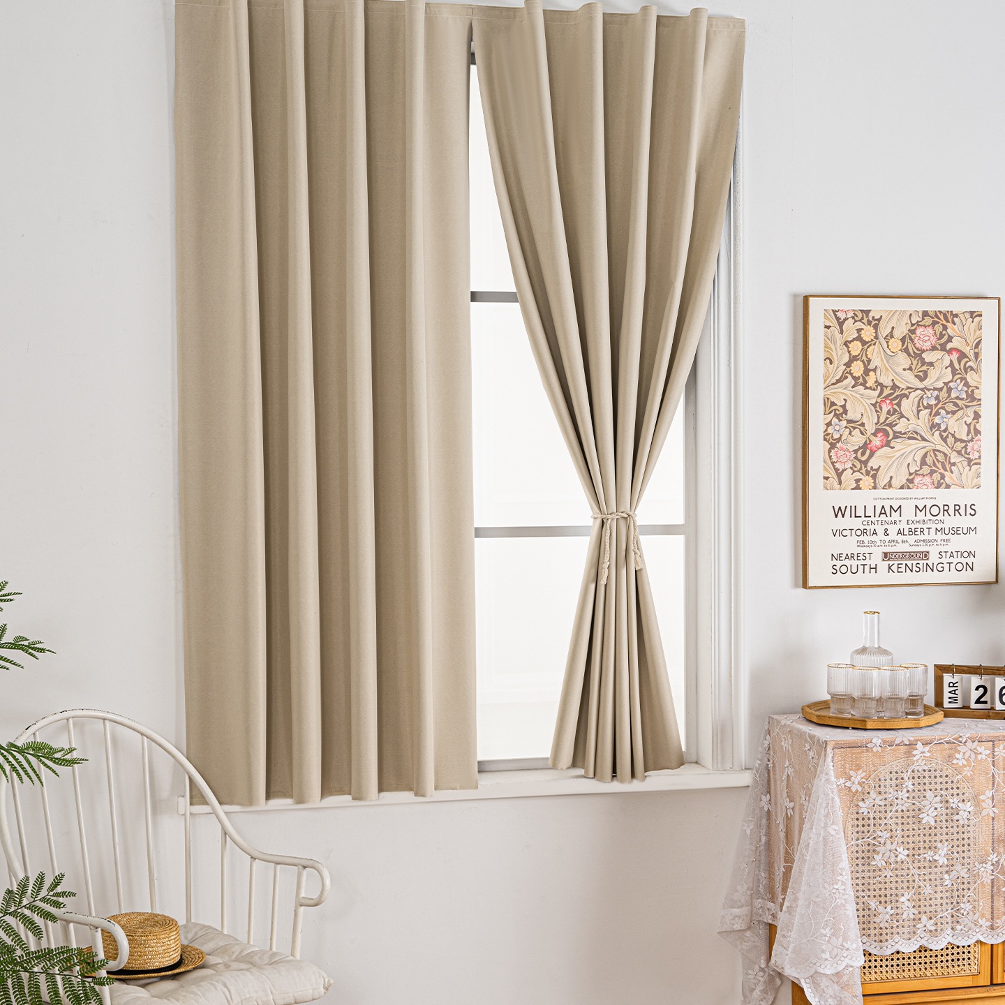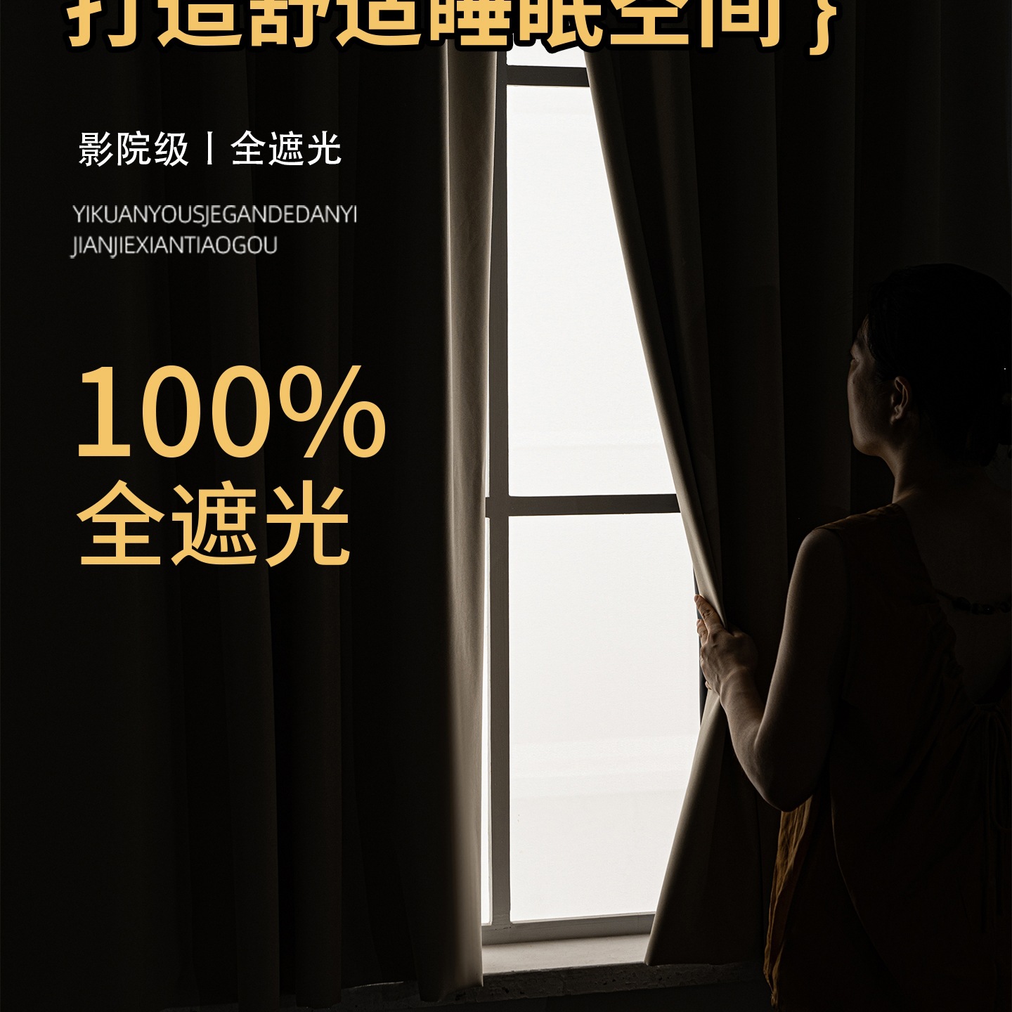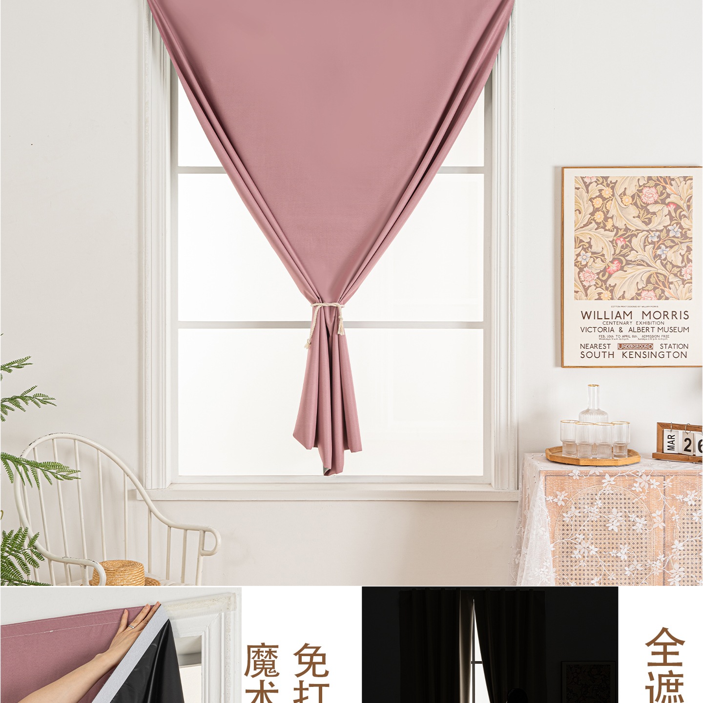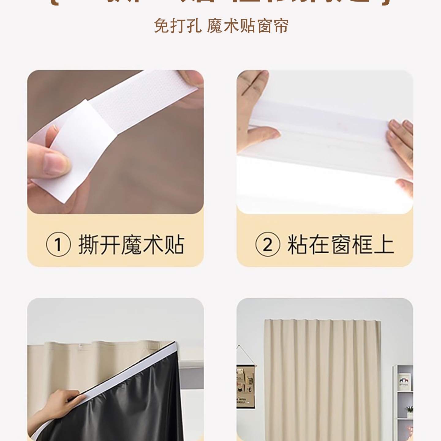 魔术贴全遮光窗帘布简易自粘免打孔卧室遮阳宿舍床帘挂布
