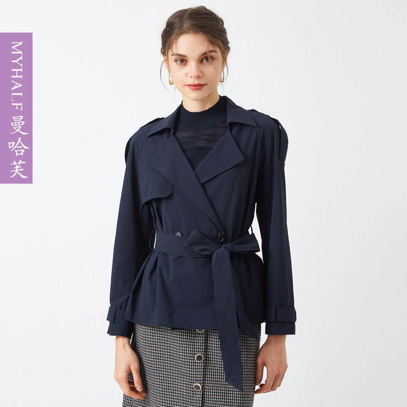 曼哈芙品牌女装短款风衣女小个子秋装高端时尚外套弹力西装领韩版
