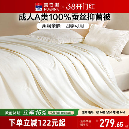 富安娜成人A类蚕丝被冬被二合一子母被单双人被芯保暖被子四季被