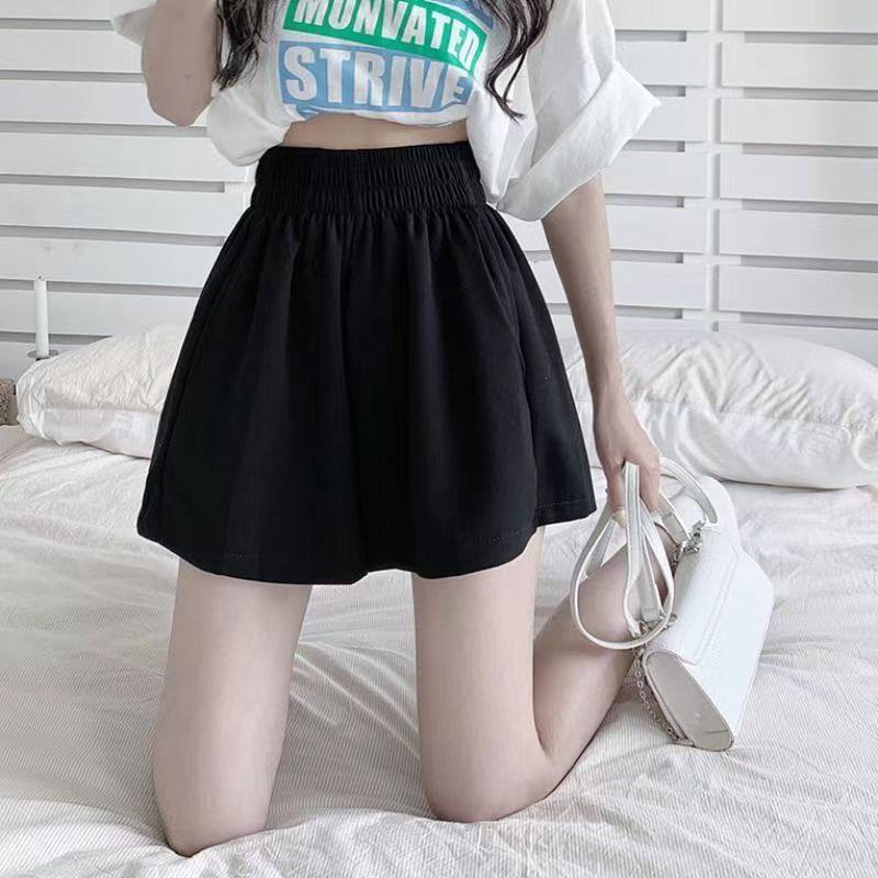 韩版灰色松紧腰宽松休闲裤女夏季薄款阔腿裤短裤热裤百搭高腰裤子
