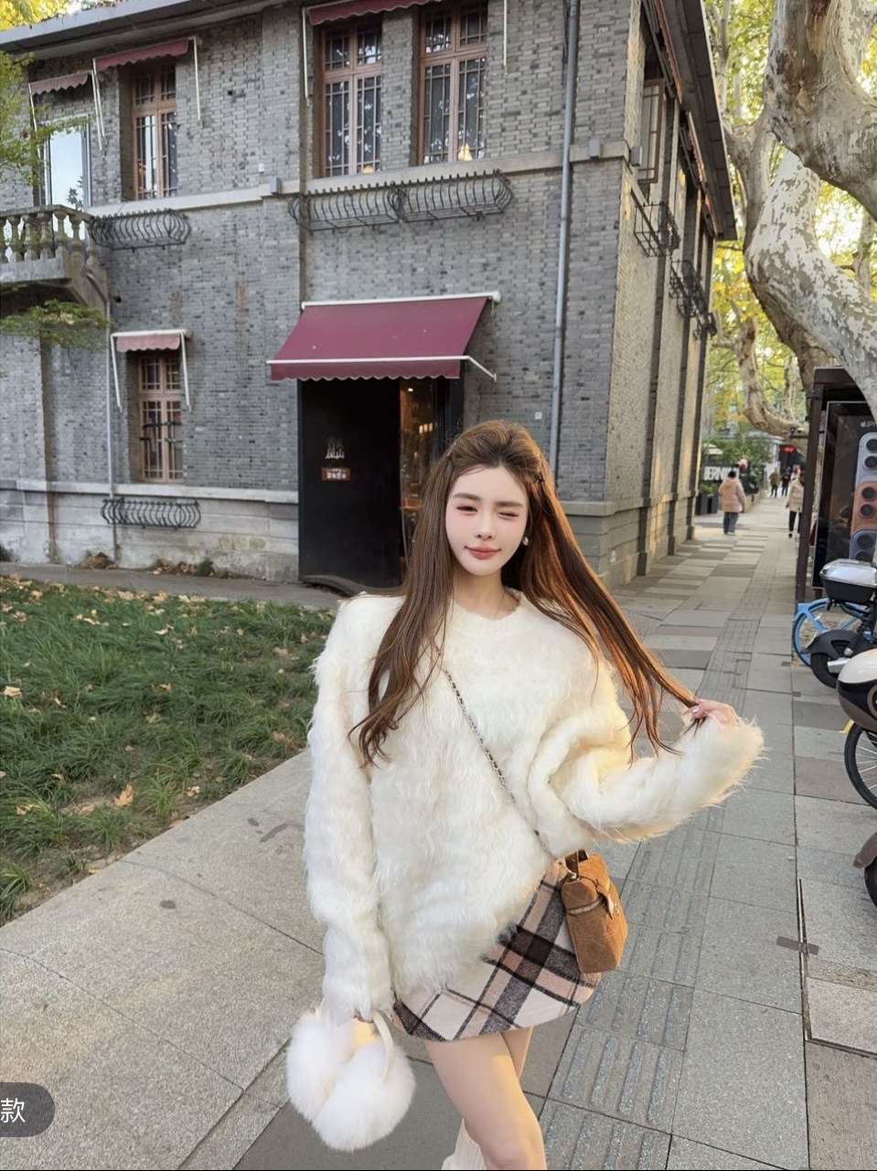 韩国东大门2025冬季新款韩版宽松休闲圆领套头毛衣女氛围感针织衫