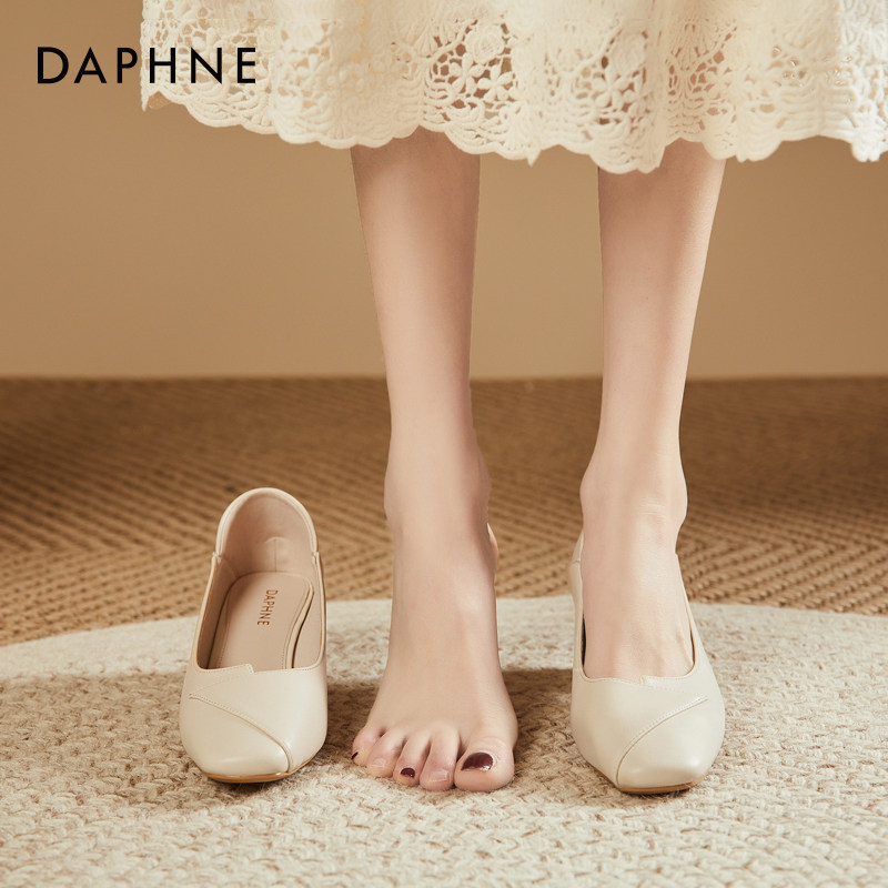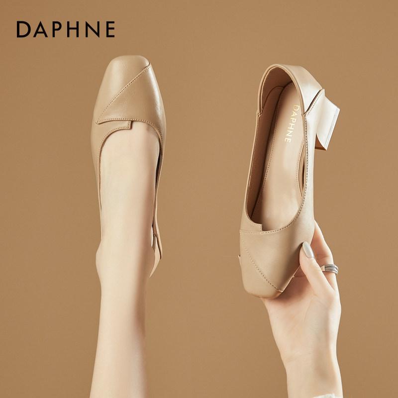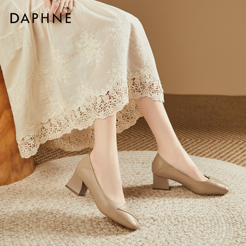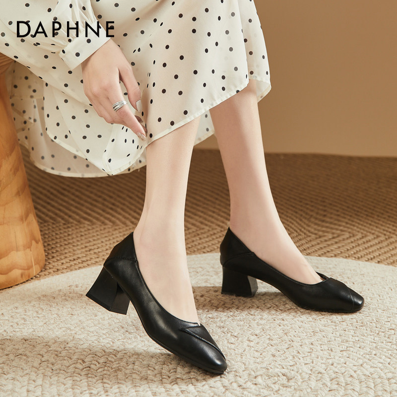 达芙妮爆款软面时尚女鞋2023年春季百搭粗跟浅口法式网红高跟单鞋