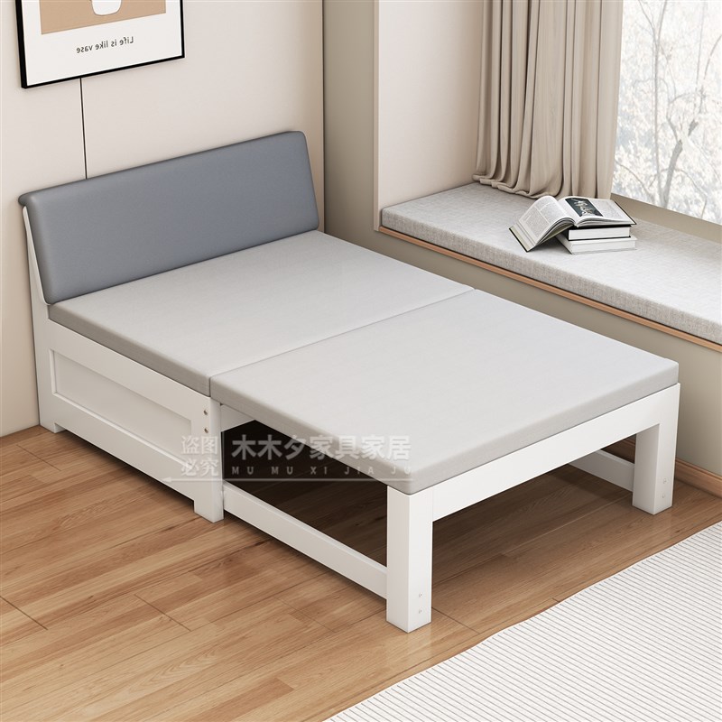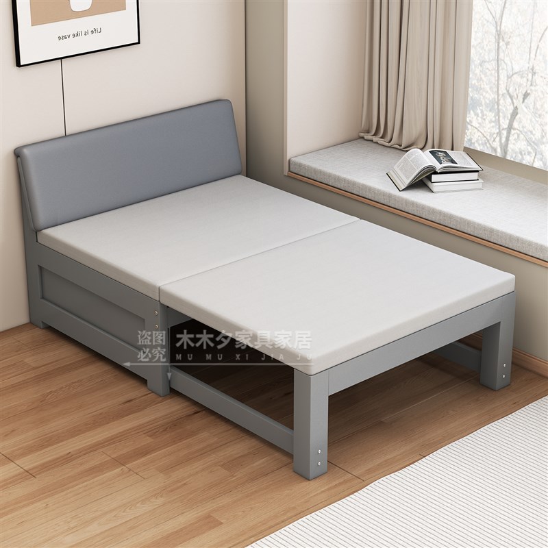 可折叠沙发床新中式原木小户型双人坐卧两用单人多功能推拉伸缩床