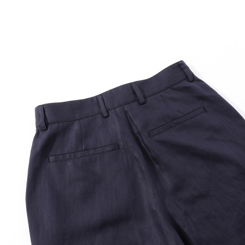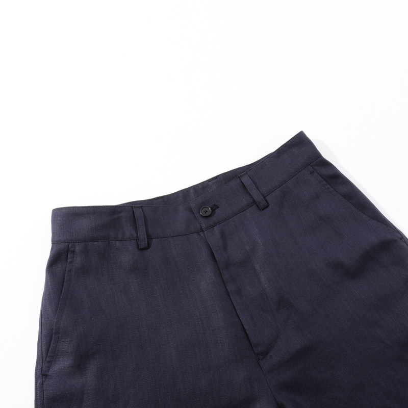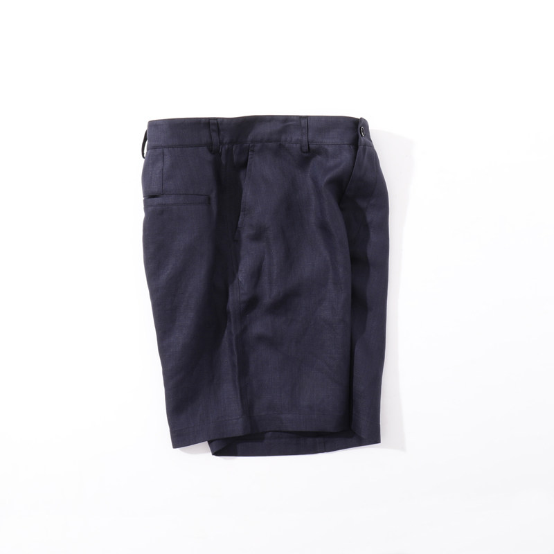 MUSLUN2025夏新款深蓝色亚麻天丝混纺休闲短裤男舒适高级老钱风