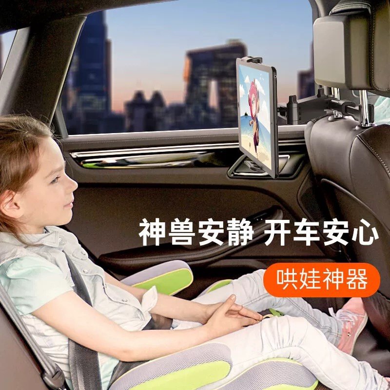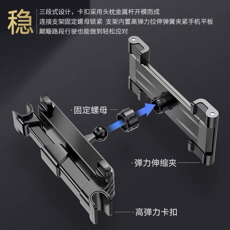 车载铝合金后排平板支架后座娱乐ipad手机可伸缩旋转折叠头枕支撑