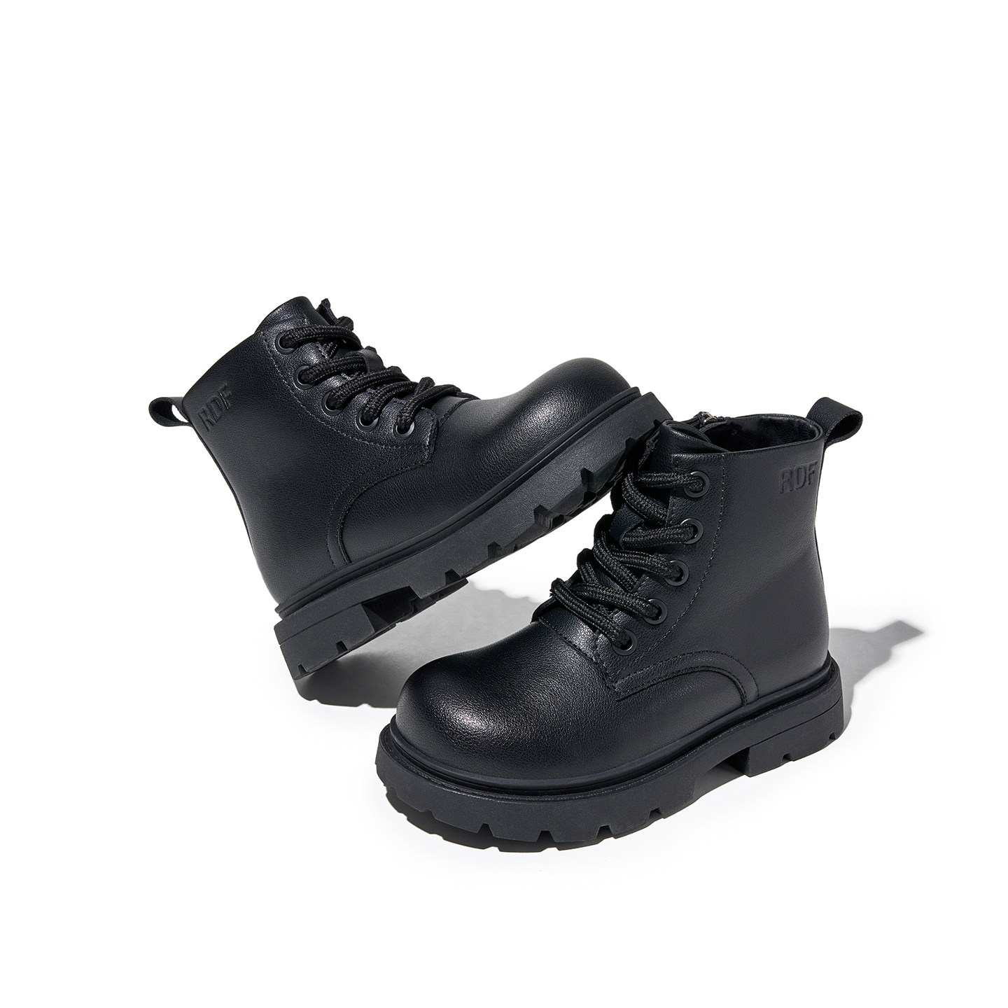 红蜻蜓女童鞋2025秋冬季新款英伦风马丁皮靴加绒儿童靴子保暖短靴