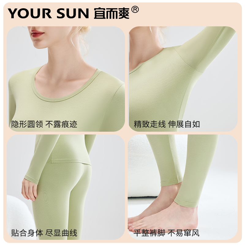 宜而爽保暖内衣秋冬纯棉薄款秋衣秋裤女套装打底线衣线裤全棉毛衫