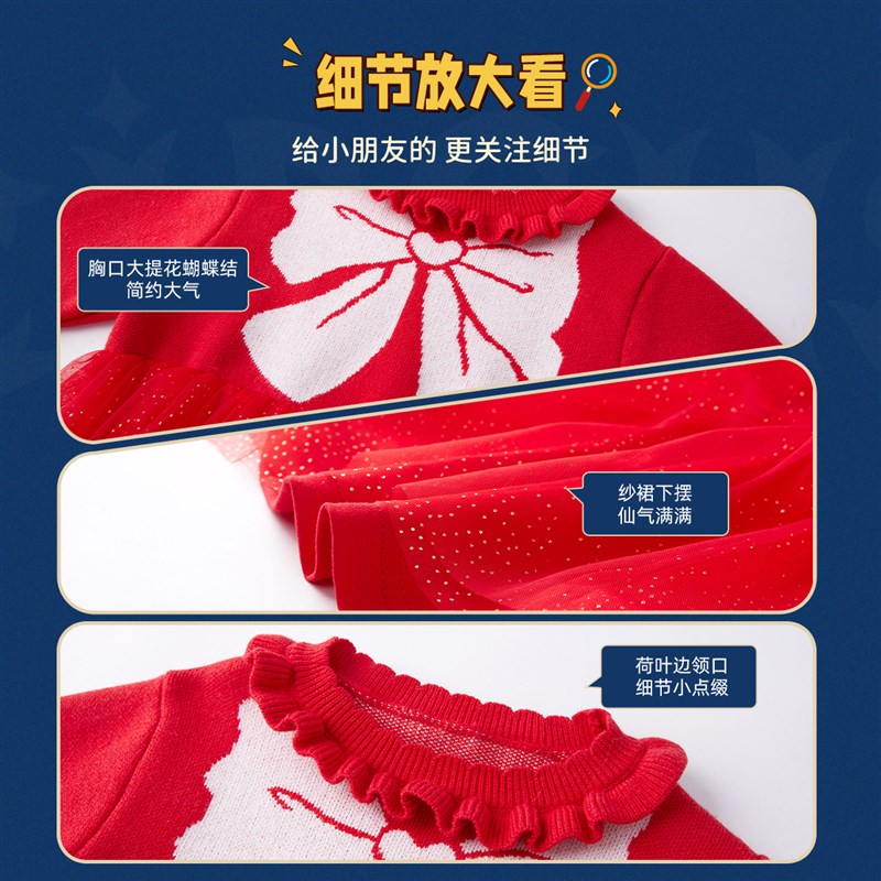 宝宝裙子冬季加厚儿童公主裙红色喜庆小童童装过年女童连衣裙冬装