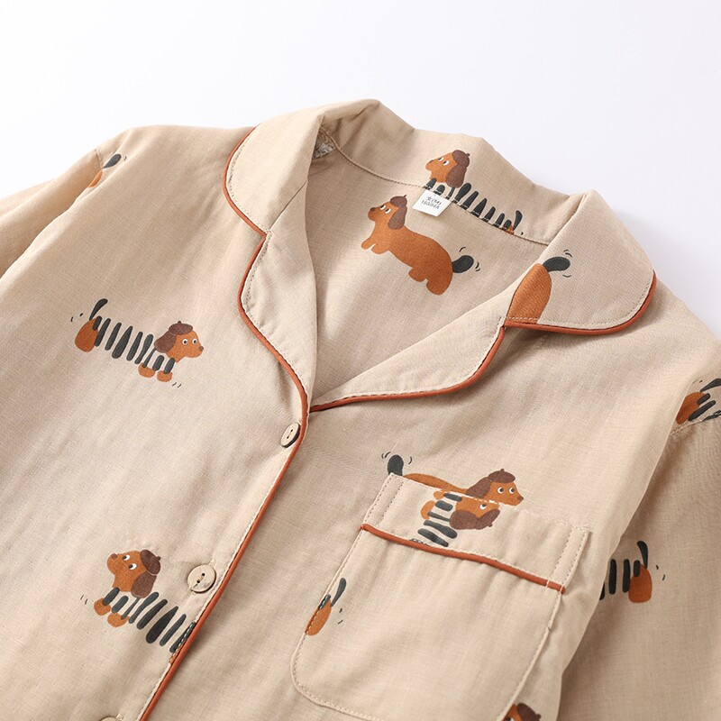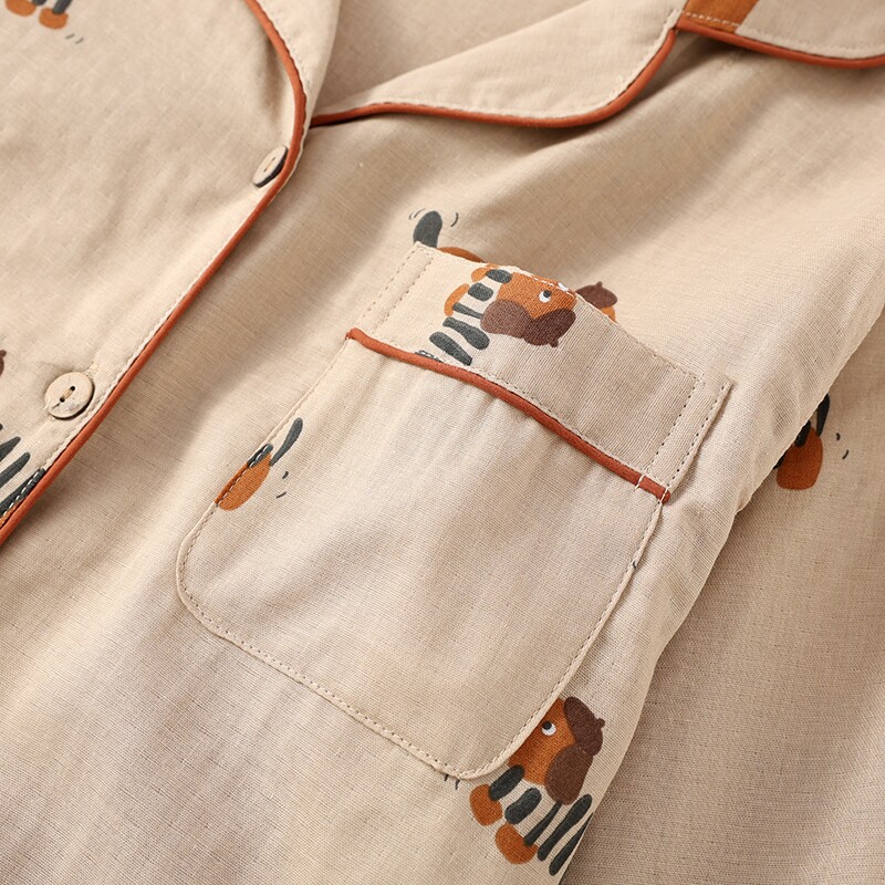 腊肠狗情侣款纯棉长袖睡衣女士男款春夏秋季卡通棉纱裤家居服套装