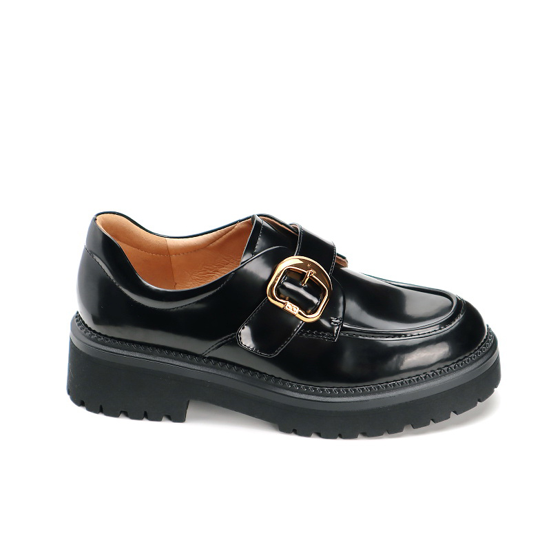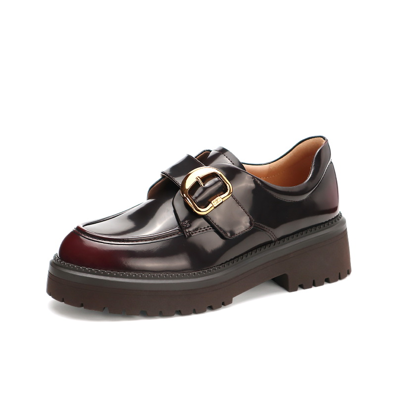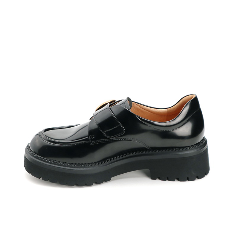 KISSCAT接吻猫2025新款真皮厚底孟克鞋小D扣乐福鞋增高小皮鞋单鞋
