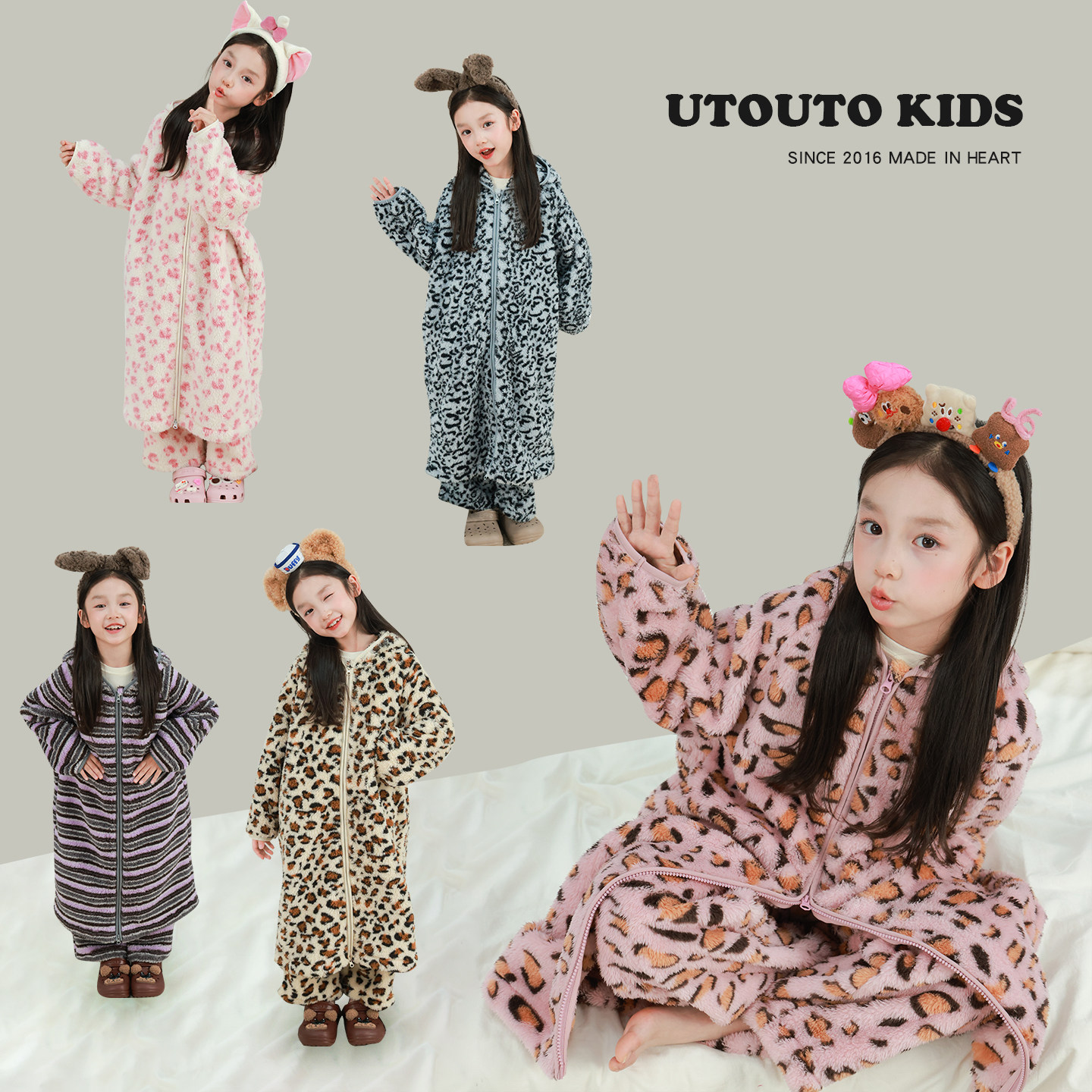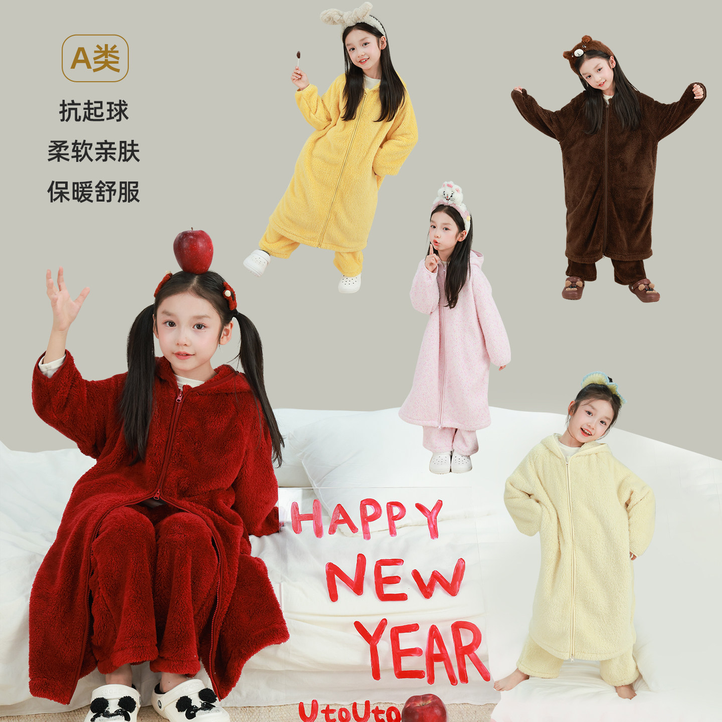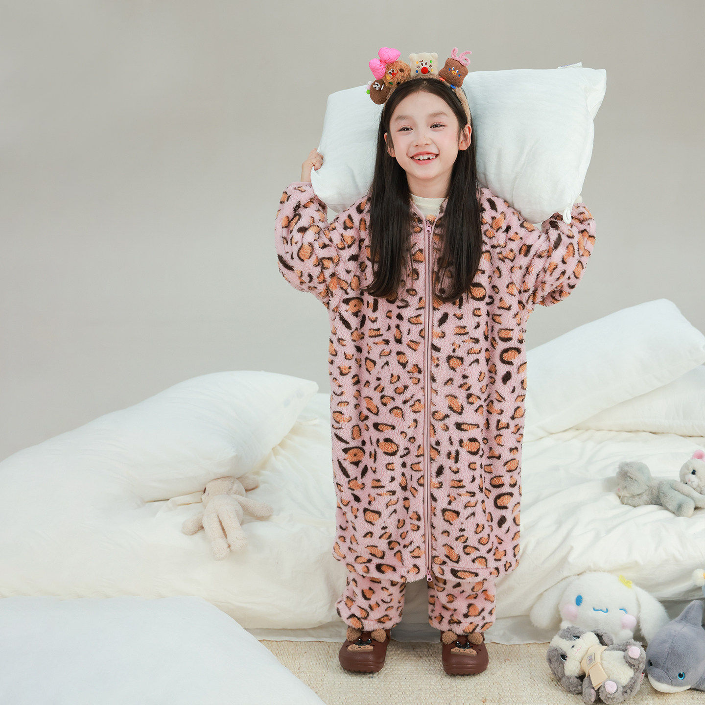 大耳象女童亲子毛绒家居服套装冬新款宝儿连帽休闲保暖睡衣长袍