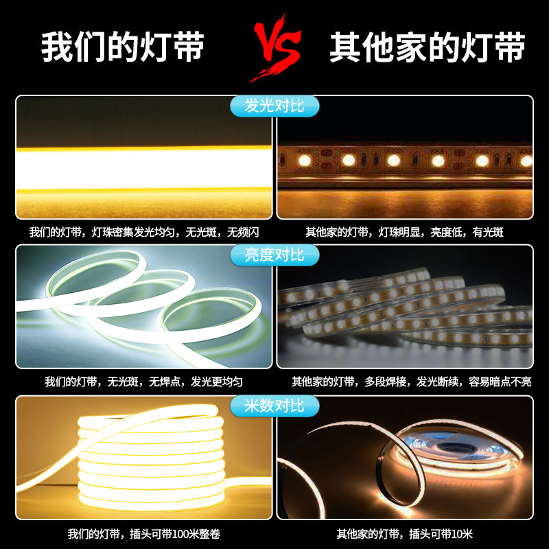 超亮COB灯带家用超薄220V客厅吊顶线形灯带条嵌入式自粘led软灯条