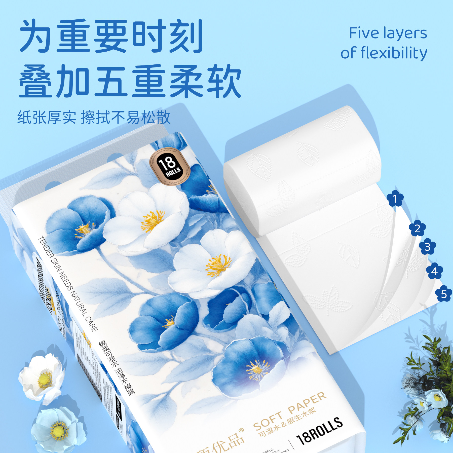 4斤18卷无芯五层加厚家用卷纸