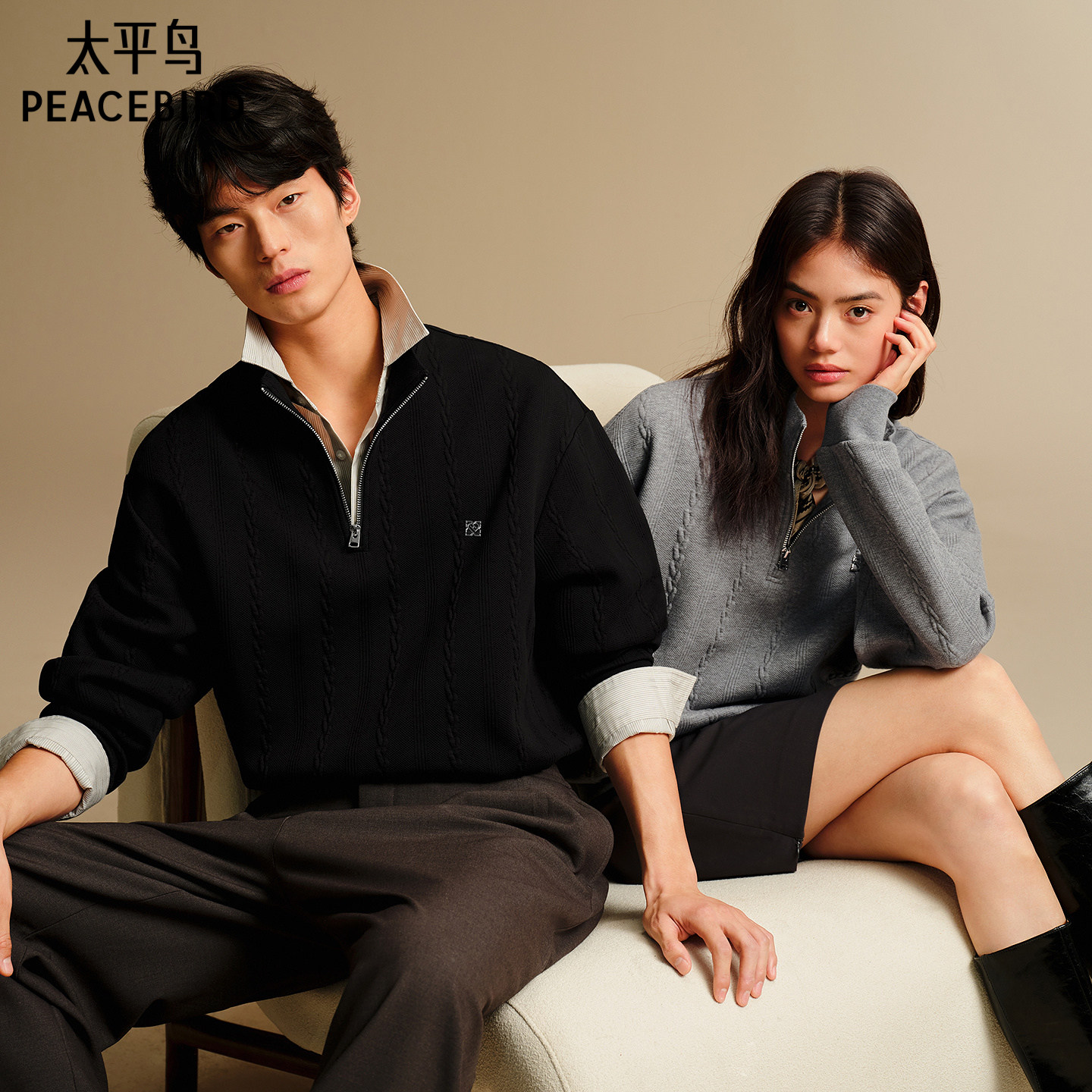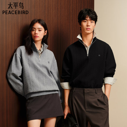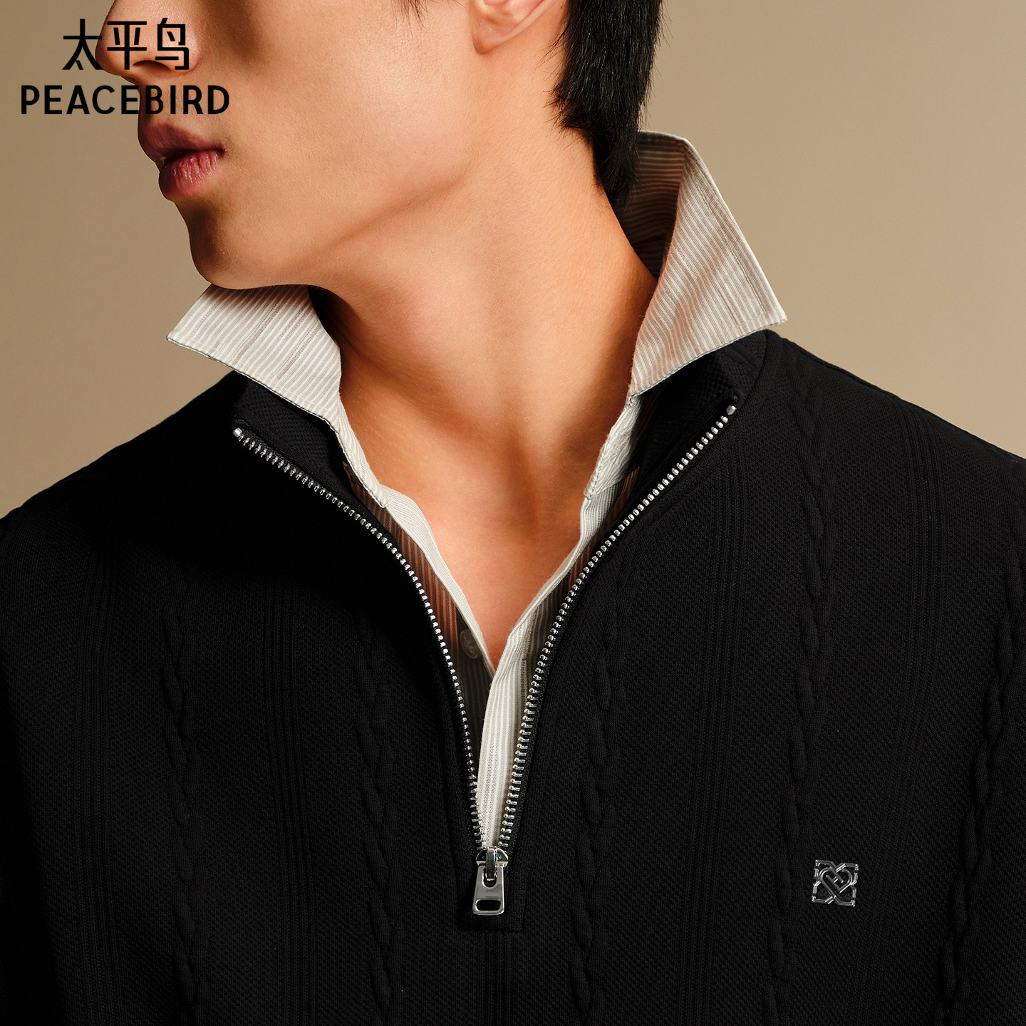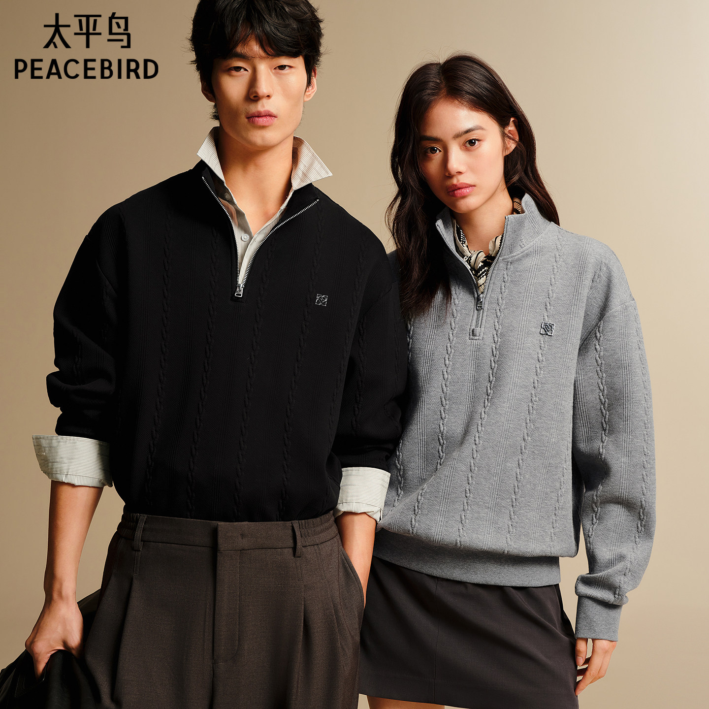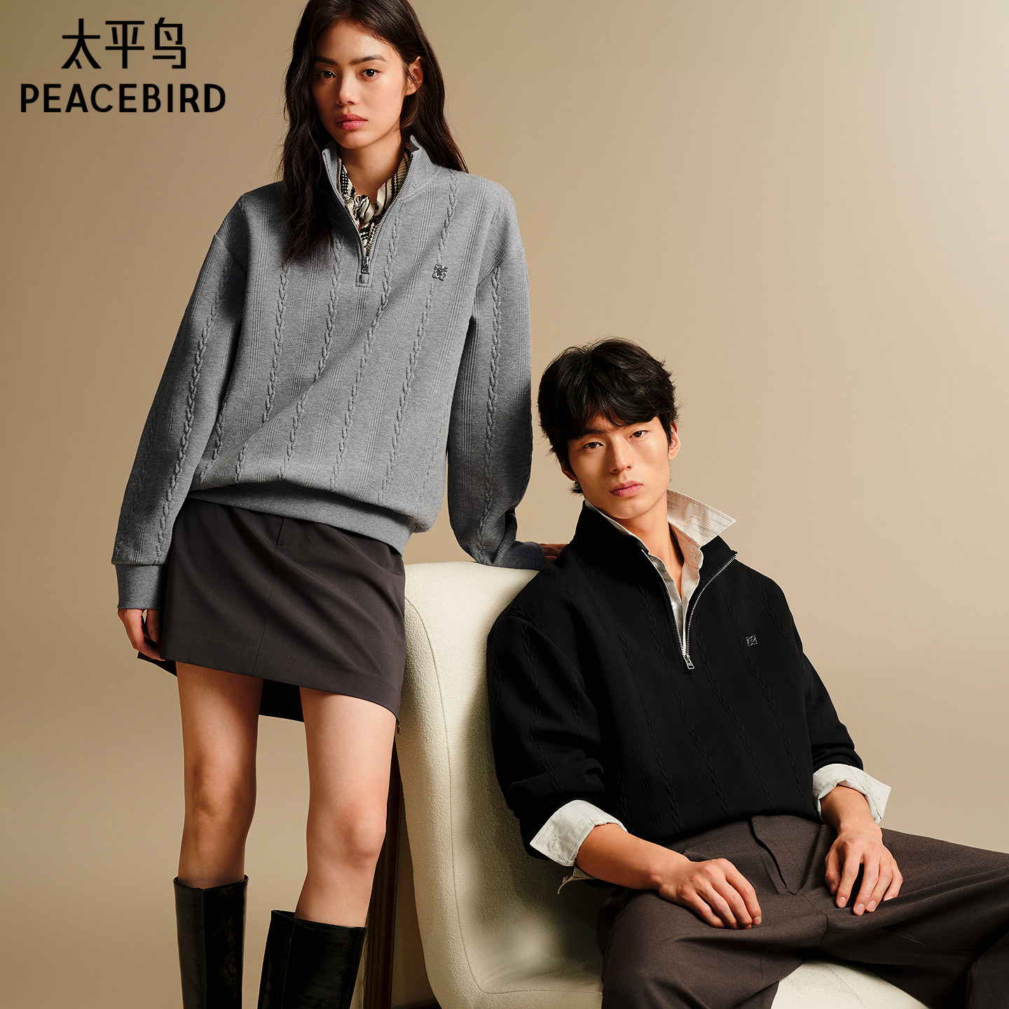 太平鸟男装 休闲卫衣时尚新款26春季新款高支高密半开襟休闲卫衣