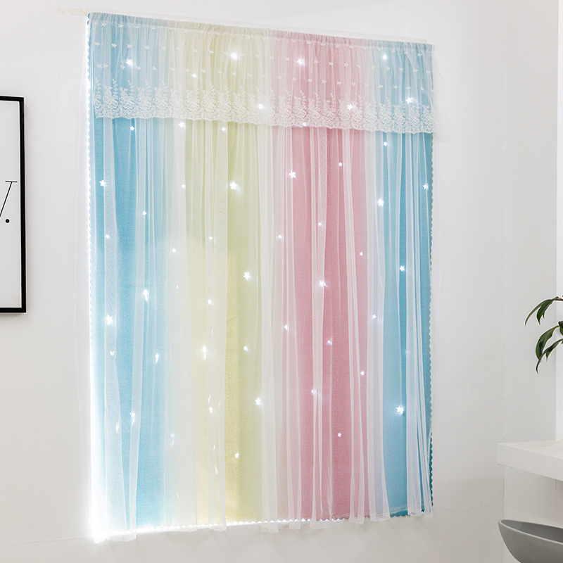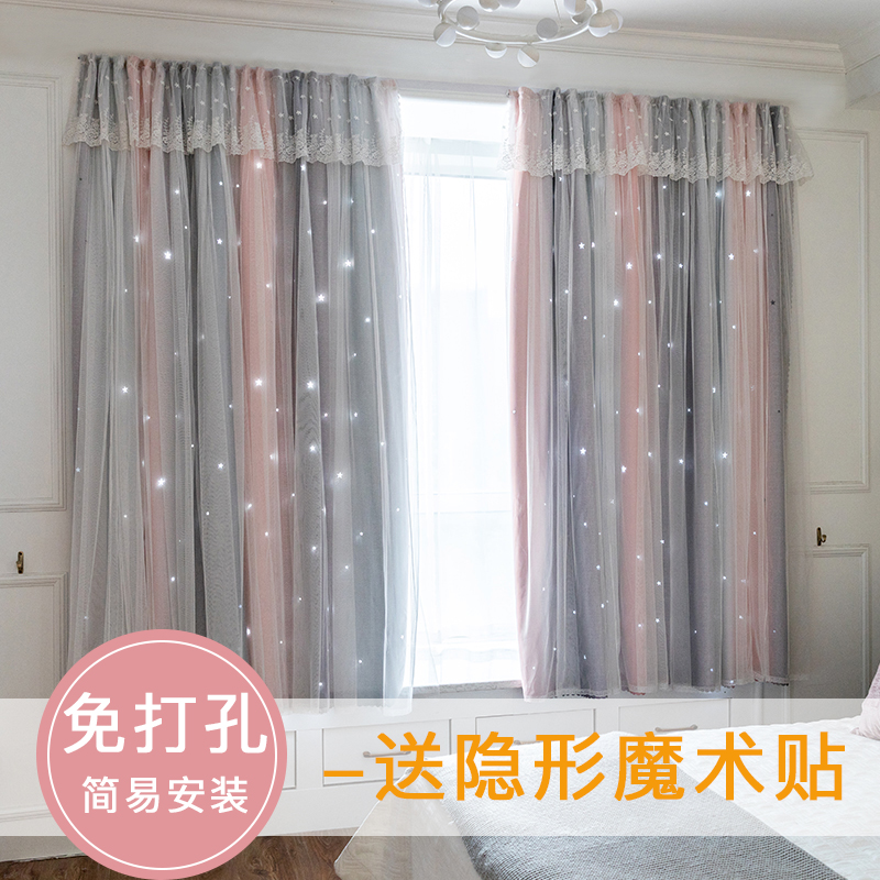 魔术粘贴式网红窗帘全遮光遮阳布卧室飘窗简易免打孔安装小窗户短
